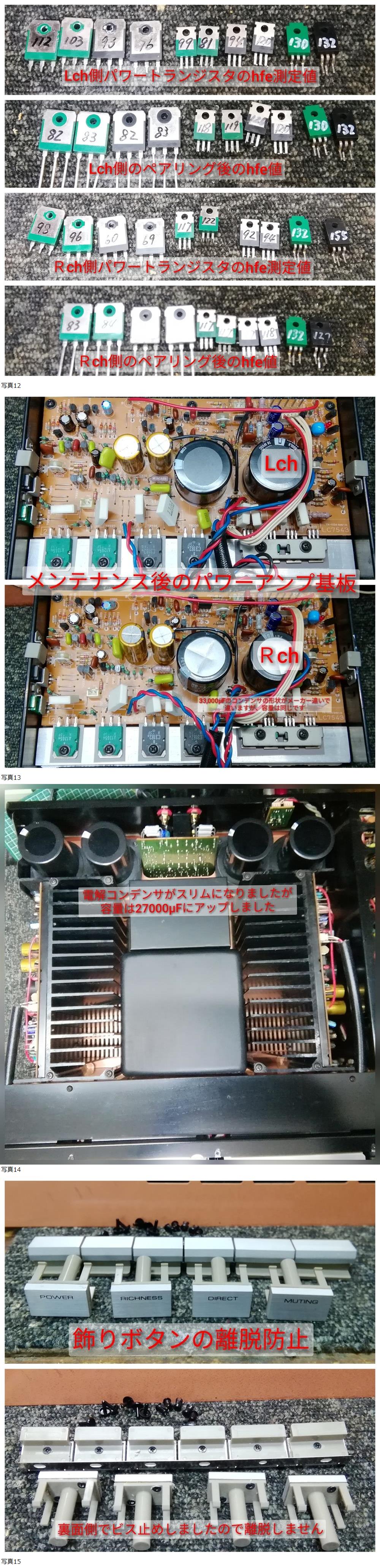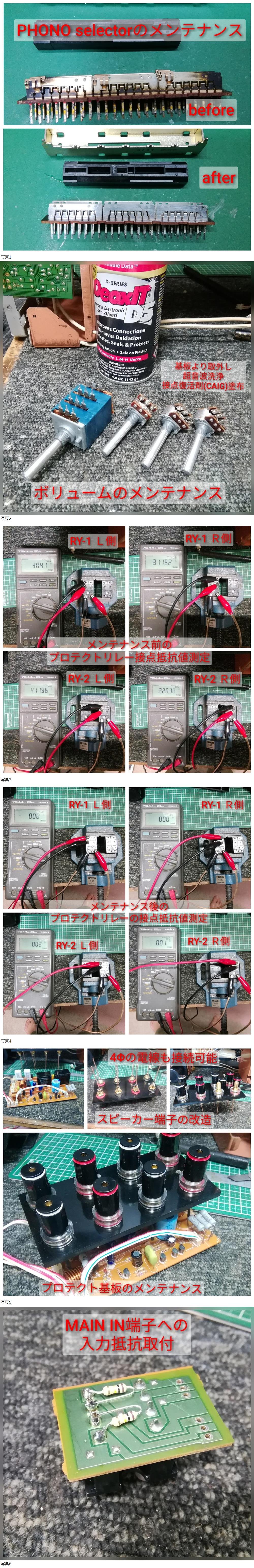 プリアンプ部の電源用フィルターコンデンサー(ニチコン1000F/35v)の静電容量が低下し電源オフ時にポップノイズが出る(A‐2000aでは設計変更により改良されておりポップノイズはでないが静電容量低下は同じ) セパレートで使用するMain in端子の入力抵抗が新製時より取付されておらず、COUPLERスイッチ操作時にノイズが発生する(A‐2000aでは設計変更により改良されておりCOUPLERスイッチ操作時のノイズ発生は無い)が挙げられます。
