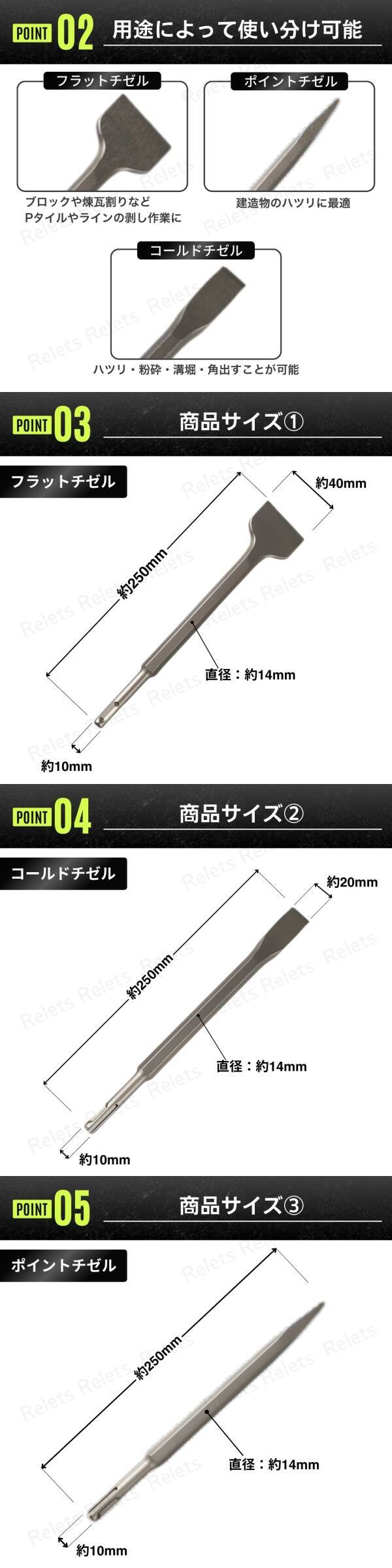 | 商品説明 | ご覧いただきありがとうございます! ●商品説明 電動ハンマー用チゼル タガネ 3本セットです。 幅広い種類の工具に対応可能です。 構造物へのハツリや破砕、溝切り、角出し作業におすすめ☆ コンクリート、ブロック、レンガ、モルタル、スレート、ALC、日本壁、大理石、陶器タイルなどに! ●セット内容 ・フラットチゼル×1本(全長:約250mm、直径:約10mm、重さ:約265g) ブロックや煉瓦割りなどPタイルやラインの剥し作業に ・ポイントチゼル×1本(全長:約250mm、直径:約10mm、重さ:約220g) 建造物のハツリに最適 ・コールドチゼル×1本(全長:約250mm、直径:約10mm、重さ:約230g) ハツリ・粉砕・溝堀・角出すことが可能 ●商品詳細 カラー:シルバー 重さ:約715グラム/3本 規格:SDSプラス 素材:40crタングステン鋼 数量:各種1本、3本セット ●お支払い方法 !かんたん決済 ●発送について 【クリックポストで発送します】 発送日 :お支払い後1~3日以内 到着目安:発送後2~4日程度 ※商品はポストに投函されます ※遠方の方はもう少しかかる場合もございます 【配送方法の変更はできません】 ●注意事項 ・落札後は期限内にお支払いください ・取扱説明書の付属はございません ・商品画像の転載や説明文のコピーはお止め下さい 〇初期不良は対応しますので、何かあれば「取引完了前に」ご連絡下さい |