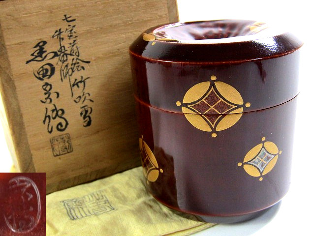 P003 黒田 宗博 作 七宝蒔絵 竹吹雪 棗 共箱【説明欄に詳細写真有り】