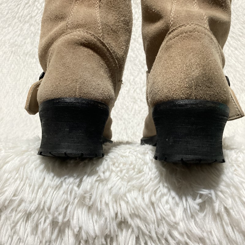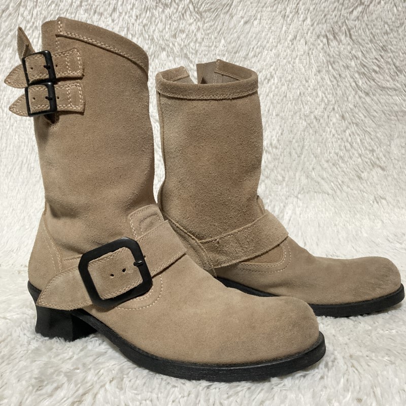 NO ID★名作★美ライン&クール★スエードレザー エンジニアブーツ 高ヒール美脚 ベージュ 40 25.5~26位 ノーアイディー Y2K 平成お兄系V系