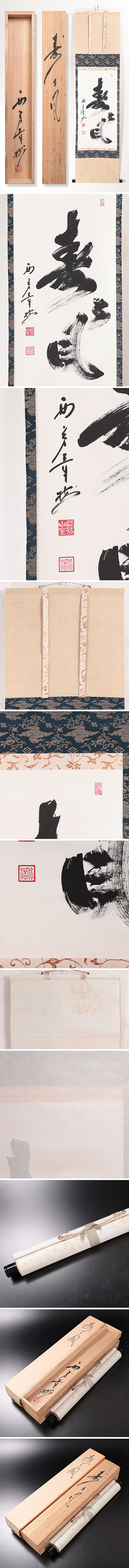 流麗かつ豪快な筆致で書かれた気持ちの良い書です。 【寿々風(すずかぜ)】・・・「寿」という漢字を重ねて長寿を願う意味や、良い風を贈るという広い意味で使われます。 ★商品は藤田青樹の作品である事を保証致します。 ※掛軸の同梱発送について※ 掛軸とお茶碗などの茶道具との同梱は、破損の危険性が非常に高いため、基本的に承っておりません。予めご了承下さいますようお願い申し上げます。掛軸同士やその他形状が近い商品に関しては同梱可能な場合もございますので、その際は当店よりお知らせ致します。 |