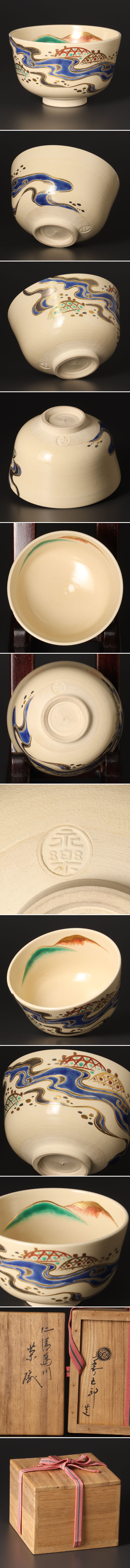 白地に明るい色彩で川のある風景が描かれた、風情ある一椀です。 ★商品は十六代永楽善五郎(即全)の作品である事を保証致します。 |