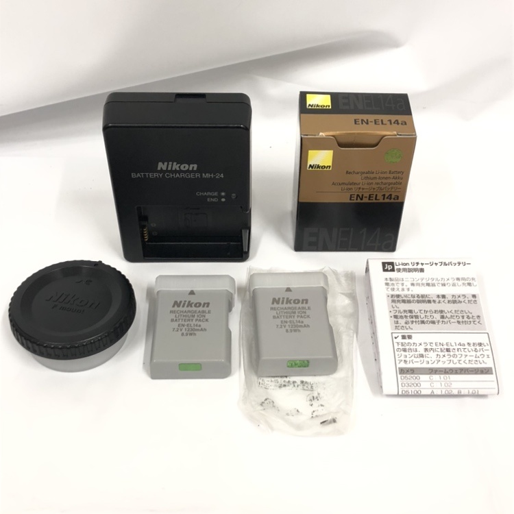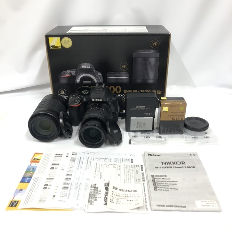 □■□■□■□ 商品説明 □■□■□■□ ・ニコン デジタル一眼レフ D5600 18-55 VR + 70-300 VR Kit AF-P DX NIKKOR 18-55mm f/3.5-5.6G VR 70-300mm f/4.5-6.3G ED VR 本体 ボディ レンズ 付属品 :ニコン バッテリーチャージャ MH]-24・ニコン リチャージャブルバッテリー EN-EL14a 2点 ・ レンズカバー・箱・説明書などの冊子 商品の状態:目立った傷や汚れなし ※※電源が入ることは確認しておりますが、詳細確認を行っておりません。