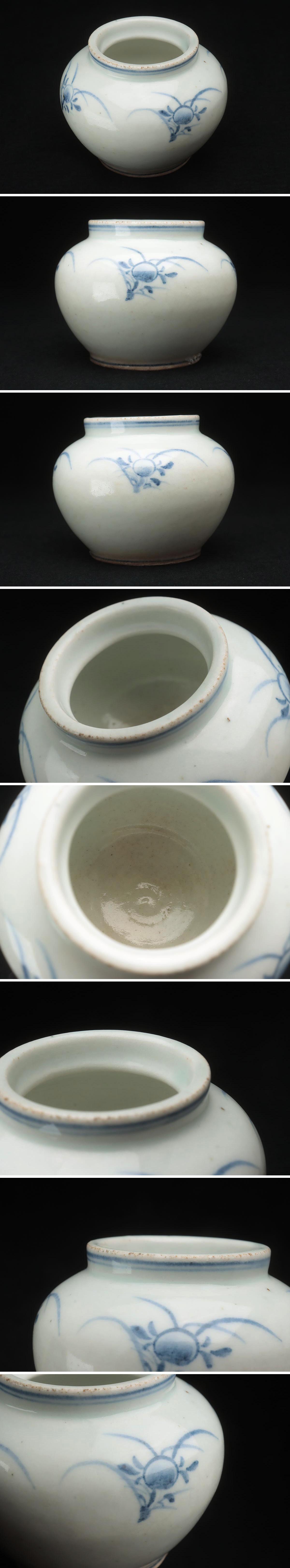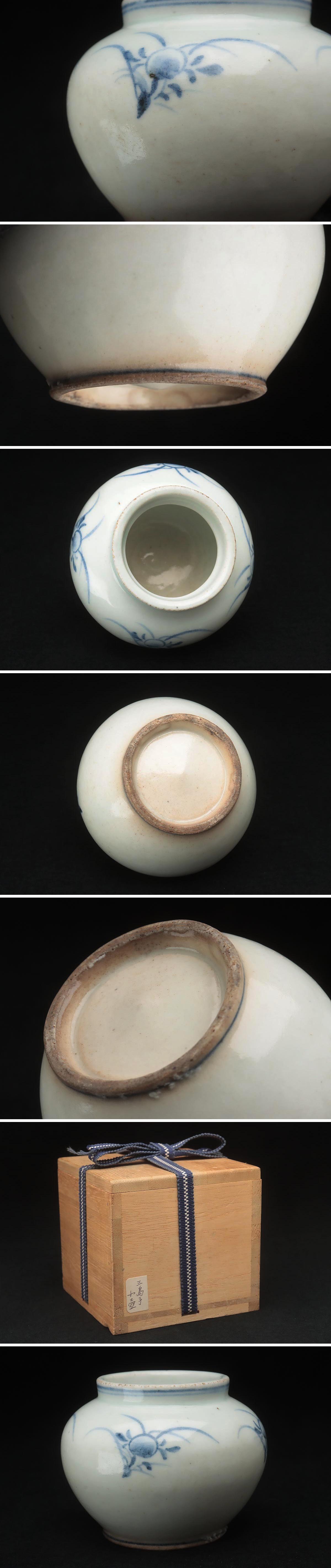 | ◆ 朝鮮古美術 李朝 分院 青花白磁 染付蘭文小壷 径9.5cm 木箱附・李朝青花白磁花紋小罐・李朝小壺 中後期 18?19C 朝鮮古陶 ◆