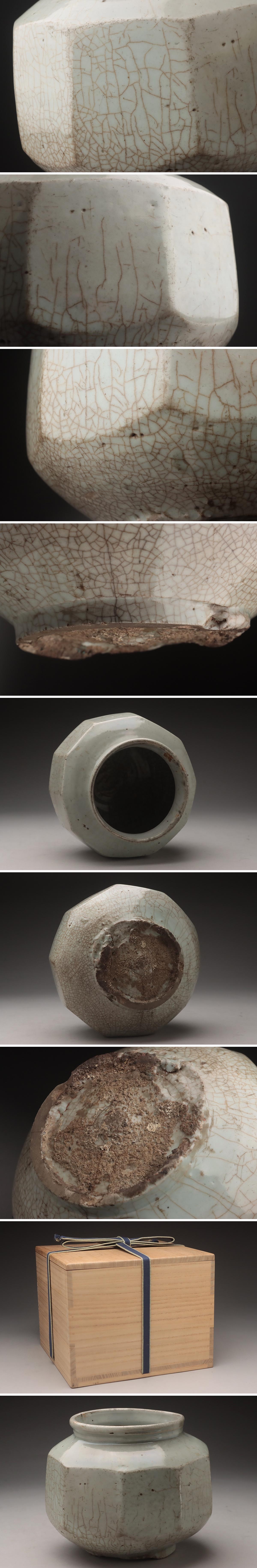 | ◆ 朝鮮美術 李朝時代 李朝 白磁 八角 面取壺 高16cm 木箱・李朝白磁面取壷・八方面取罐 朝鮮古陶磁 朝鮮古美術 ◆