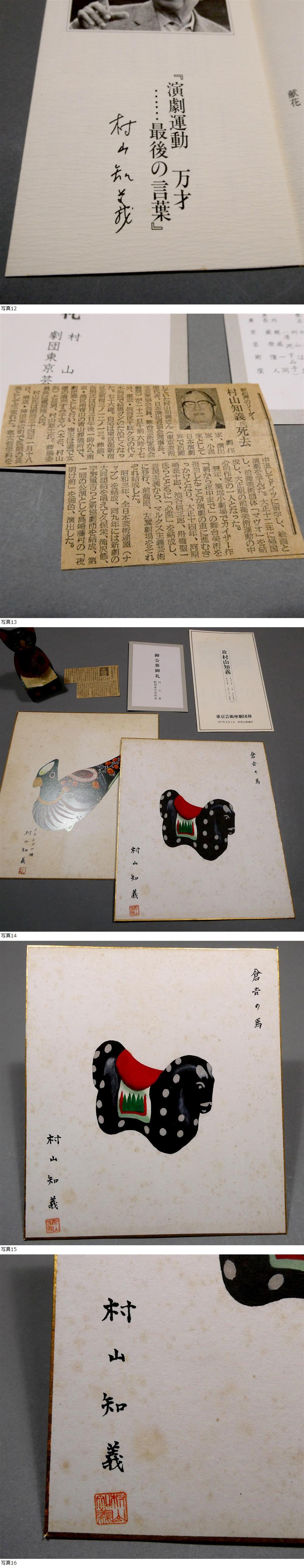 ■ 村山知義 真作 自筆肉筆画 「倉吉の馬」 色紙 直筆 毛筆署名 &落款入り 前衛美術団体 MAVO ■