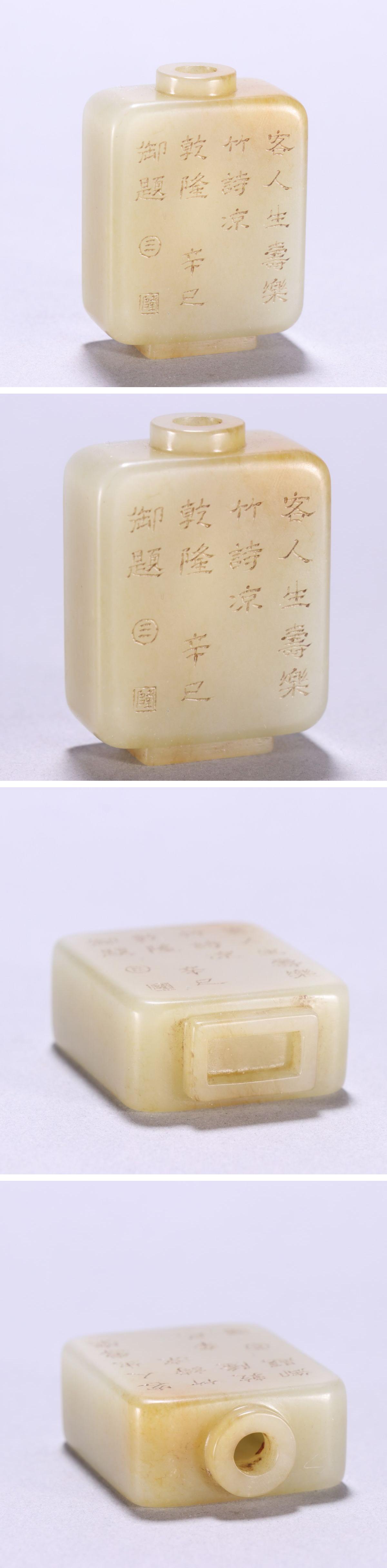 【清】関西某オークション購入 中国伝来 清時代物 和田玉子料 漢詩紋鼻煙壺 当時物 時代コレクション8L1-AM