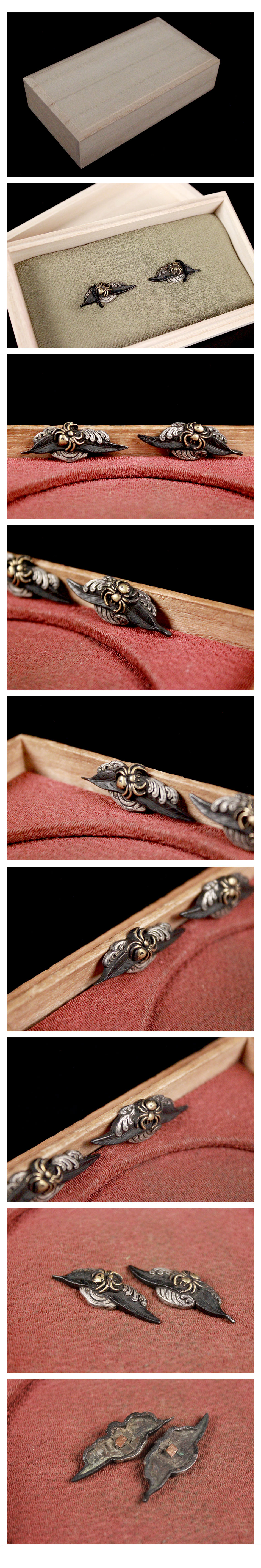 | 【喜楽】銀蜘蛛目貫 刀装具武具 木箱 112886 | - |