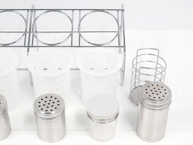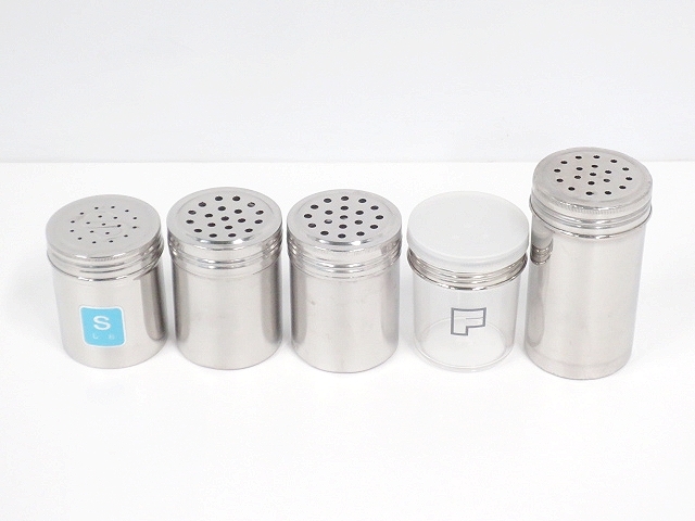 | 梱包サイズ:W505xD190xH173(mm)/2.1kg 【商品説明】 ★塩や胡椒等の容器としてご利用いただけます。 ★全部で5本の香辛料入れがセットです。 【状態:中程度★★★★☆】 『△』中古品につき[すり傷][シミや水垢の跡]等使用感が見受けられます。 『※』写真では載せきれない部分にも上記使用感がございます。 『※』上記文章と写真をご覧いただき【USED品】とご理解いただいた上でご検討ください。 『商品詳細』