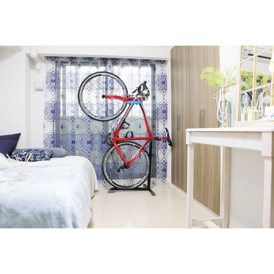 | 商品説明 | 自転車を立てかけておくための床置きスタンド。シンプルなデザインは展示会などの ディスプレイでも使用されています。保管やメンテナンス・整備の際にも活躍します。フレームの形に左右されないので、幅広い自転車にお使いいただけるバイクスタンドです。 使用頻度の高い自転車の保管にも便利! 床に置いて自転車の保管やディスプレイに最適! 玄関や部屋の隅にも設置できて場所を選びません。 自転車の後輪ホイルをスタンドにスライドし、自転車を立たせるだけで簡単に駐輪完了! 室内に置けば盗難の心配なし。 横置きから縦置きにすることで部屋のスペースが広くなります。 自転車を保管するだけでなくディスプレイする際にも最適★ (ご注意) サスペンションのトラベルの長さが15cm以上のトレールバイクやダウンヒルバイクはご使用出来ません。 又は後輪に長いフェンダーや長い泥除けが付いているものや、後方チャイルドシートやスタンドがある自転車は使用出来ません。 ※スタンドに乗せる時、自転車はシートポスト(サドルの棒)に乗せるではなく、自転車のフレーム部分に立てかけます。 サドルバックをご使用の場合、シートポストの高さの位置と使用サドルバックの厚みでスタンド使用が可能かどうかを、写真を参考にご判断下さい。 ※安全のため、地面が水平な場所に設置してください。 |