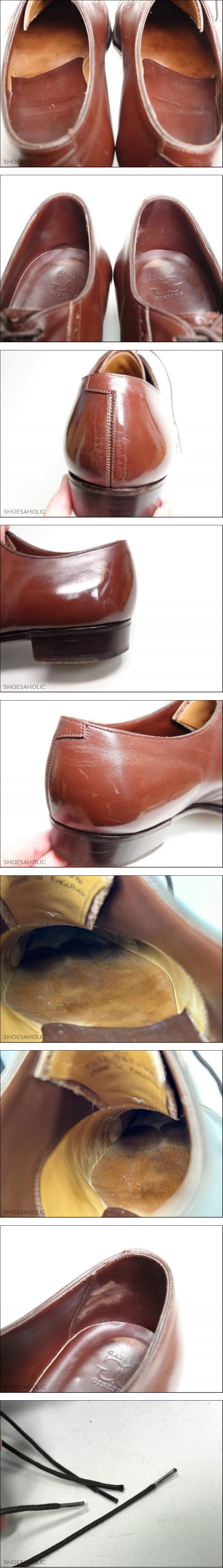 | 商品説明 | ●ご試着について:最下段の<特定商取引法>に記載のある東京都国立市の実店舗にてご試着可能です。 ●出品ID:557 ●管理コード:6530 ●ブランド:ガジアーノ&ガーリング ●商品詳細:HAYES #TG73 ●サイズ・ワイズ :9.5E ●右足のソールの実寸: 全長: 30.8cm 最大幅: 10.7cm ●カラー:ダークブラウン ●素材:カーフ ●付属品:なし *付属品にシューツリーの記載の無い商品は撮影用のツリーのため付属しません。 *箱・袋はヨレ、キレ、スレ、シミ等がある物もありますので、おまけとお考え下さい。 ●全体的な状態:C/D ( A:試着程度 B:使用数回 C:極上 D:美品 E:中古 F:一部訳あり) ●アッパーの状態 ( ) 試着程度品ですが試着シワ・保管スレがあります。 ( 〇 ) トゥ周り、ヒール周り、側面にスレ、キズ、履きシワがあります。 ( 〇 )素材の色ムラ、染料のムラ、クリームの色ムラ、アンティーク加工があります。 ●ライニングの状態 ( ) 試着程度品ですが保管スレ・保管シミがあります。 ( 〇 )靴の内側に履きシミがあります。 ( 〇 )靴の内側にスレがあります。 ●ソールの状態 ( )試着程度品ですが試着スレ・保管シミがあります。 ( )ハーフラバーが貼ってあります。 ( 〇 )トゥはスティール・ラバー・レザーが付いています。 ( )ソールは交換されています。 ( )ヒールは交換されています。 ●特記事項 やや強めの履きシワがあります。 ヒール部分にワックス割れがあります。 ヒールカウンターとライニング側面に強めのスレがあります。 中底にヒビがあります。 靴紐の先のプラスチックに割れと抜けがあります。 ソックシートにスレあり ーーーーーーーーーーーー<お知らせ>ーーーーーーーーーーーーー ●お問い合わせについて:質問フォーム またはお電話でお願い致します。 ●実店舗について:店名:シューホリック 所在地:東京都国立市東2-6-6 フジノビル2階 ●営業日について:公式サイト上トップページの「インフォメーション」にてご確認下さい。 ●発送について:定休日・臨時休業日・土日祝日・休暇中 以外の営業日に行います。 ●送料について:ヤマト宅急便 元払い(日時間指定・営業所止め可)の全国一律1000円(北海道、沖縄は+500円) ●入札について:落札後24時間以内に必ず連絡の取れる方、落札後3日以内に決済可能な方のみご入札下さい。 ●お値引きについて:承っておりません。 ●返品について:商品の不備や記載ミス以外、気に入らなかった、サイズが合わなかったなどお客様都合での返品は受け付けていません。 ●評価について:評価は基本的に当ストアよりは差し上げておりません、ご希望の場合お知らせ下さい。 ●同時販売について:実店舗や公式サイトでも併売をしているため、以外で完売後に上で掲載の取り下げが間に合わない場合があり、ご落札後のキャンセルをさせて頂く場合があります。 ●特定商取引法に関する表記● ・販売業者 株式会社 シューホリック ・事業内容 高級靴・高級鞄を専門に販売、輸入および買取業務。 ・運営統括責任者 井上 祐太 ・古物営業許可証 株式会社 シューホリック 東京公安委員会 308891606450 ・郵便番号 〒186-0002 ・住所 東京都国立市東2-6-6 フジノビル2階 ・電話番号 IP電話:050-5534-6695 会社携帯電話:070-4100-5694 ・お支払い方法 かんたん決済 ・お支払い期日 ご落札後 3日以内 |