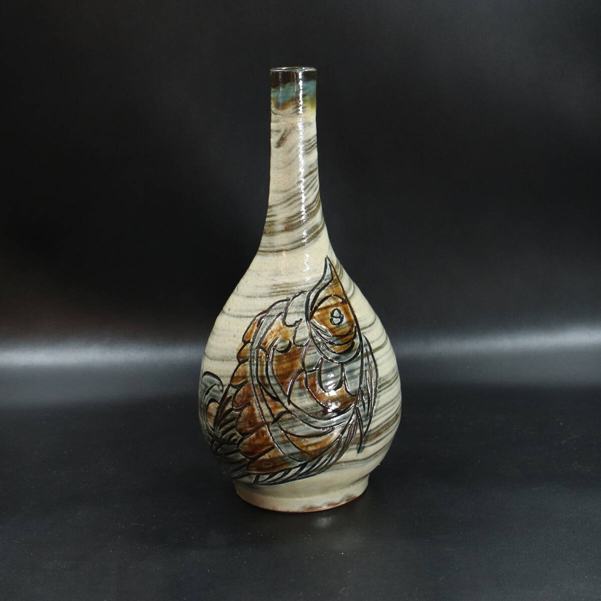 力強い魚の彫り文様が、まるで器の表面を躍動するかのようです。