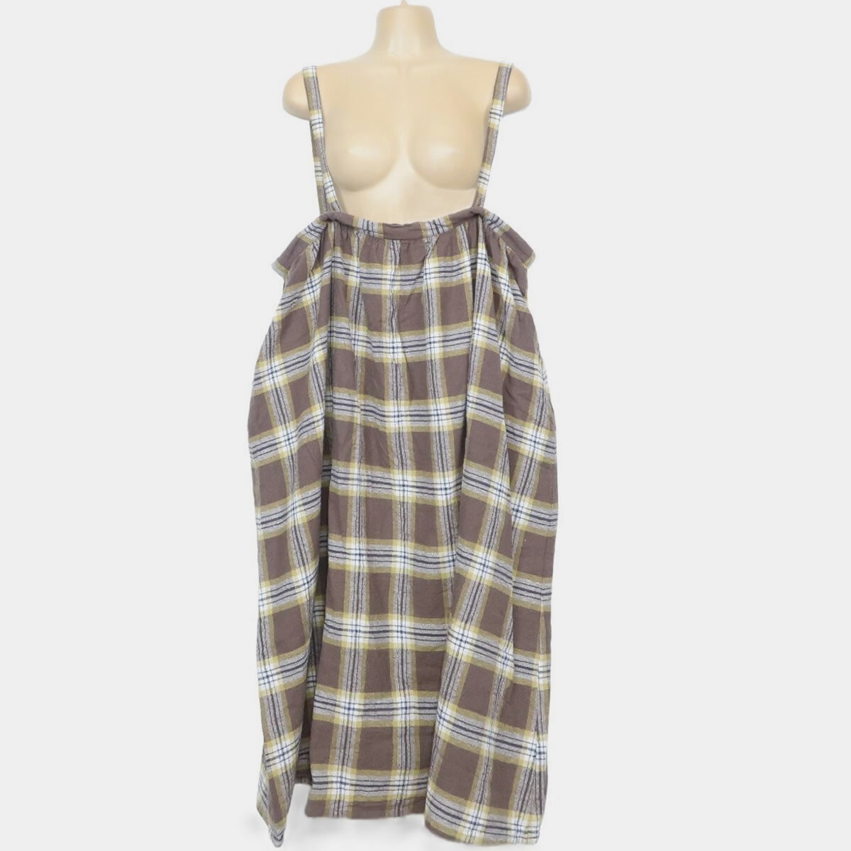 | 商品説明 | 【実寸約】 ウエスト100 丈86 (cm) 【サイズ表記】 F 【素材】 綿85麻15% 【状態】 普通の使用感のあるお品物 【デザイン】ブラウン×イエロー 落ち着いた色合いがすてきな肩ひも付きフレアスカートです。 肩ひもはボタンで取り外し可能。 着回しのきく一枚です。 両サイドにポケット付き。 ウエストは内蔵コードで調節も可能です。 |
