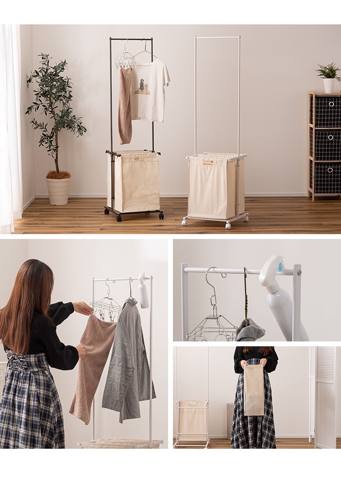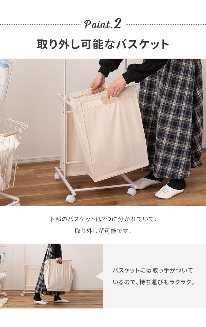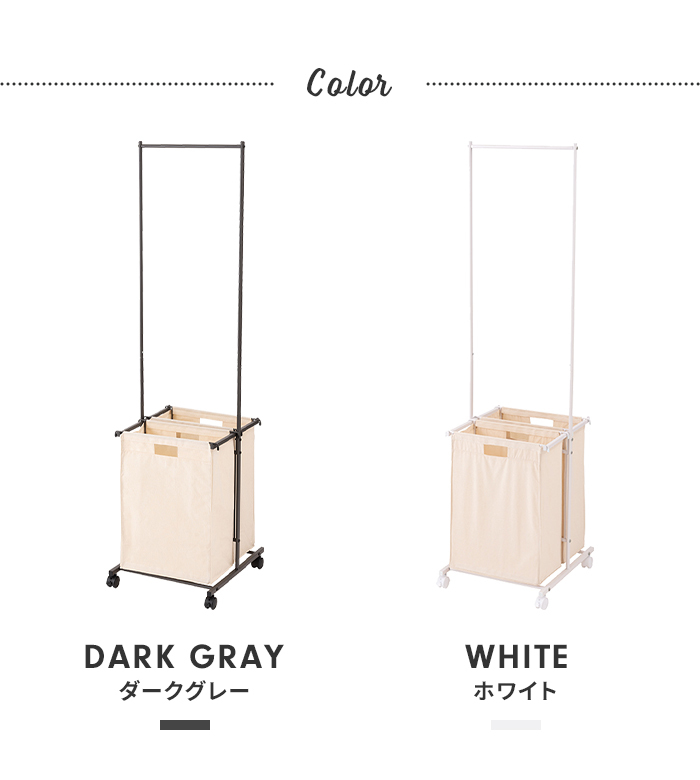 | ランドリーハンガー キャスター付き バスケット付き 洗濯 ランドリーバスケット 高さ157.5cm 洗濯物 収納 シンプル 洗濯カゴ 洗濯物入れ 2分類 ダークグレー 灰 ホワイト 白 物干し 干し 屋内 部屋干し スリム コンパクト 省スペース 洗面所 フレーム おしゃれ スタイリッシュ 脱衣所 |
