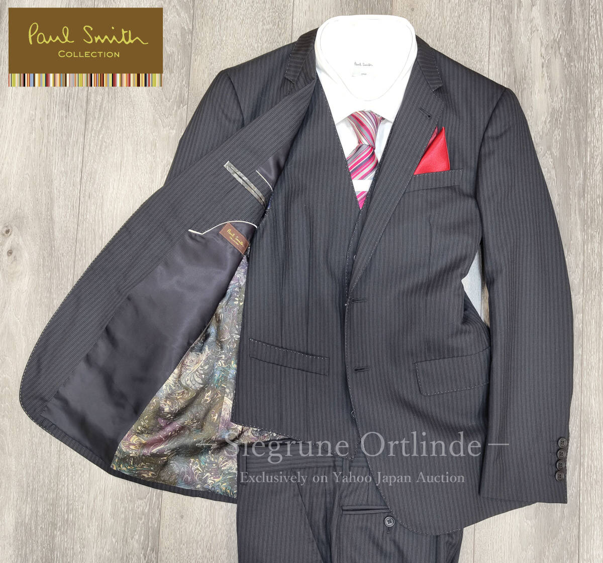 | 【極上美品】ポールスミス コレクション Marble柄裏地 スリーピース スーツ ブラックのストライプ柄 90-78-170 (Mサイズ) Paul Smith ★☆★☆ あなたに寄り添う良品専門店へようこそ! ☆★☆★ 傷や汚れは無くても肘やお尻がテカったスーツってどう思います? 全てを程度の良い選別品で揃えられるのは全国でも弊社だけ! ありがたい事に今ではリピート率3割超えの信頼を頂いております 2点以上で送料無料! 各種クーポンは[まとめて取引]の合計金額に適応出来るのでご活用下さい スピード発送(ヤマト運輸営業所から即日出荷!) 落札後に決済 ⇒ 月曜日発送 ⇒ 火曜日到着(一部地域は+1日) 匿名発送(おてがる配送宅急便)だからプライベートも安心 受渡しも色々 サイン不要の非対面[置き配]で不在時も対応 さらにコンビニや営業所で受け取りも可能(クロネコメンバーズと連携必) ご入札は商品説明及び以下の項目をご確認頂いた上、入札操作も慎重にお願いします ■商品の程度 使用感の少ない極上美品です(クリーニング済みで即着用可) 綺麗なノーダメージ品 ■程度と商品説明 コレクションラインのスリーピーススーツで裏地はマーブル柄 黒にダブルストライプ柄で各部にAMFステッチが施されたお洒落 スーツで御座います こちらは使用感も少なく傷はもとよりテカリも無い奇麗な状態で 安心してお買い求め頂ける商品となっております。 是非、この春のイベントにビジネスに如何でしょうか? ■メーカー:Paul Smith (株)ジョイックスコーポレーション ■カラー:ブラック系(ダブルストライプ柄) ■表地:ウール96% シルク4% 裏地:キュプラ他 ■季節:秋冬春(総裏地です) ■タグ:90-78-170 (Mサイズ) ■実寸 ジャケット 肩幅 約42cm 身幅 約47cm 着丈 約70cm 袖丈 約60.5cm ジレ 身幅 約47cm 着丈 約55.5cm パンツ 胴囲 約79cm (+6cm 最大約85cmまで広げれます) 股上 約26cm 股下 約80cm (+6cm 最長約86cmまで伸ばせます) 渡り 約32cm 裾幅 約18.5cm 総丈 約103cm ■採寸位置 肩幅(肩⇔肩の直線)/身幅(脇下の片幅)/着丈(後襟下~裾)/袖丈(肩~袖先) 胴囲(内周測り)股上(前部分~股の繋ぎ目)/股下(股の付根[十字部分]~裾) 渡幅(股の付根位置での片幅)/裾幅(裾の片幅)/総丈(前身頃の帯位~裾先) ※採寸位置は各部位の縫目・繋目 (幅)=平置き直線距離 ×2で囲(筒)です ※(胴囲=ウエスト)はパンツの入り口(帯部分)ベルト位置を指します ※裾を伸ばせる寸法はシングル仕上げでヘム(返し)を約2cm残しの想定です ※ウエスト・股下などのお直しは購入後ご自身でお願いします ※タグサイズと商品の実寸が違うのは当然です。スーツを購入したら裾上げを するようにウエスト調整したり袖丈を変更する場合もあるので、ご検討の際は 上記採寸(実寸)表を優先し、お手持ちのスーツや衣類と比較してご検討下さい ■季節表記と裏地の種類 背抜きは春夏の4~10月頃/半裏は盛夏の7~9月頃/総裏は秋冬の10~4月頃 着用時期(シーズン)は本州主要都市の気候を元に説明させて頂いてます お住いの地域や気候により異なります事、ご理解をお願いします ※半裏は背抜きを更に前身頃の裏地を省き夏用に軽くて通気性を高めたものです ■備考・その他 販売はスーツの上下またはジレ(ベスト)がセットのスリーピースで撮影備品の シャツ/ネクタイ/ハンカチ/ハンガー等の撮影小物は付属しておりません ベントや裾仕上げなどは其々商品画像にてご確認頂けます ![]() ![]() 安心安全宣言!!良いものだけをお届け致します! 良品店の原則はお客さまファースト! その① ダメージ現実品は一切無し、程度の良いものしか取り扱わない その③ 肘やお尻にテカリがあるような粗悪品は販売しない その③ 程度を誇張せず嘘偽りなく誤魔化したり隠したりしない その④ スーツはクリーニングしてから販売(コットン素材除く) その⑤ 全品売り切り、入札が伸びないからと取り消したりしない(※3) その⑥ 季節にあったもの、各イベント前にも合ったものを提供 その⑦ 販売後のアフターも完璧 連絡がつかないなんてあり得ない テカリはスーツの寿命です! テカリのあるスーツは買取時に値段が付きません 車で例えるなら多走行で使用感 も酷くルーズで不衛生と本来の役目を果たせないからです。 古着市場でも捨値なこれを質より値段で仕入れフリマやオークションで売られ被害 が出ているようです、特に悪質なのがそんな粗悪品や破損した状態でも[未使用級] と称して売られているので、入札前には評価の確認を忘れず行いましょう。 [未使用]か[未使用級]とノークレームノーリターンがセットであれば確信犯です 弊社ではお客さまの安全のため[新品同様]は全て返品保証付きで販売させて頂てま すのでご安心ください。「騙されるのはもう懲り懲りだ!まともな出品者は居ない のか?」とそんな方にお勧めで御座います。程度の良い選別品だけを販売し、説明 はしっかり、嘘や誇張は無く中には返品保証も付けたお品もあり自信をもって販売 させて頂いてます そして全商品クリーニングしてから販売※(一部除外:注意事項⑤を参照)しており 