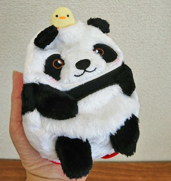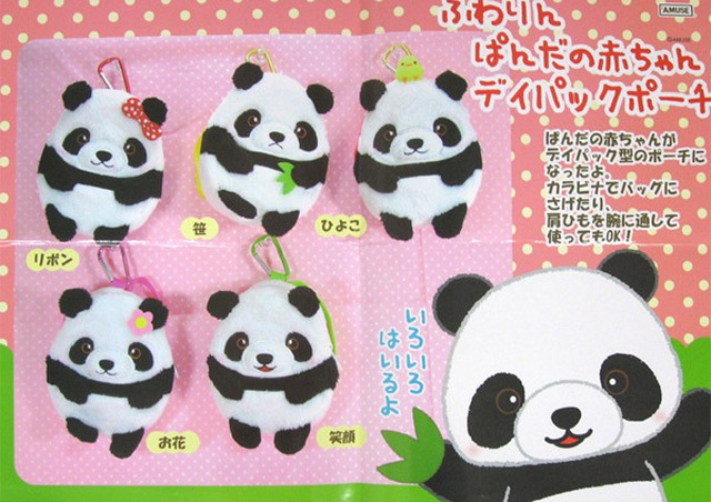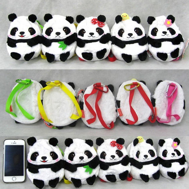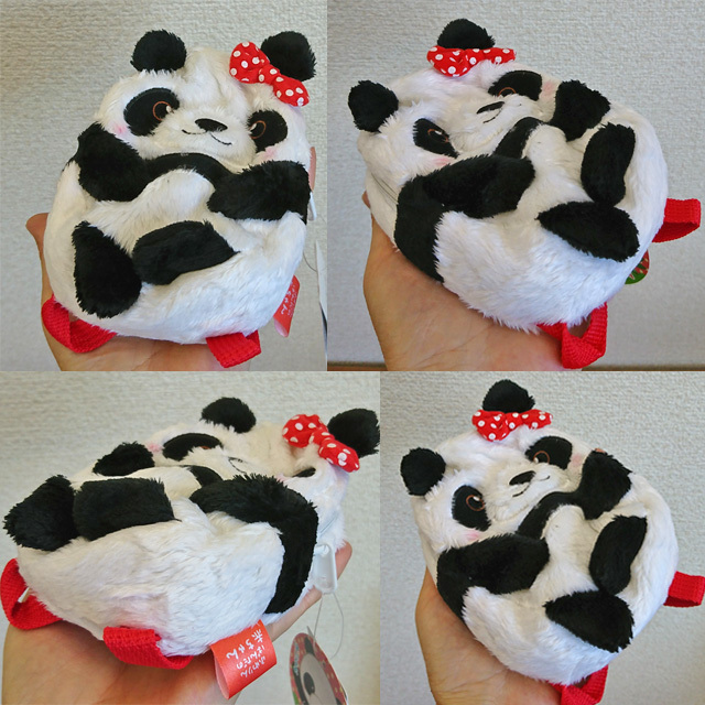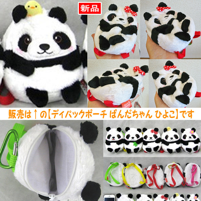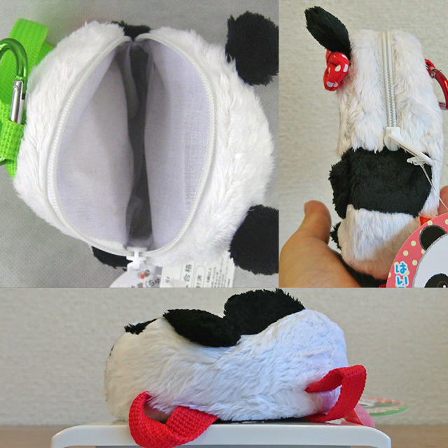 カラビナ付デイパックポーチ パンダ ひよこ&赤紐 ファスナーが中ごろまで開くので物が取り出しやすいです |