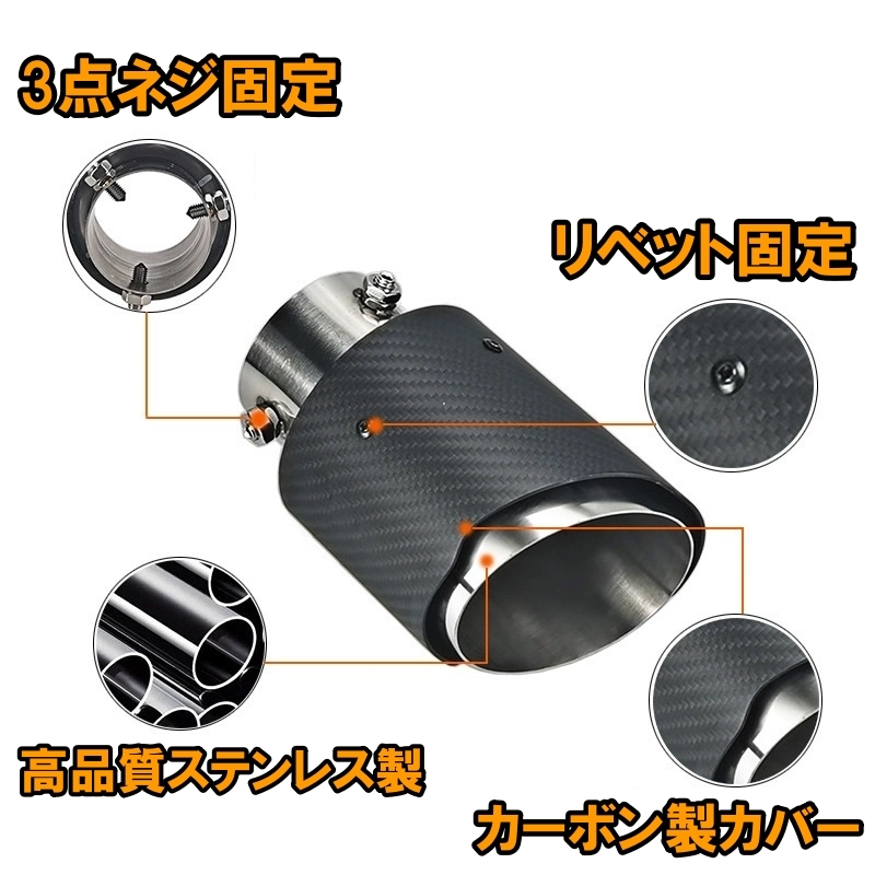 | 商品内容 汎用カーボンマフラーカッター 特徴 ・装着可能マフラー外径(60mmタイプ):38mm~58mm ・装着可能マフラー外径(75mmタイプ):53mm~73mm ・テール径:89mm/101mm/114mm ※全6サイズ ※お客様のお車に合ったサイズをお選びください ・数量:1個(※両サイドマフラーの場合は2点お買い求めください) ・形状:ストレート ・テール:斜めカット ・材質:カーボン(艶あり)/ステレンス 適合確認 ※タイトルにある車種は参考車種になります。 ※タイトルにある車種でも排気量やグレードによって マフラーの外径やリアバンパーの形状が異なります。 必ずマフラーの外径とリアバンパー形状 及び商品の寸法をご確認ください。 取付に関する注意事項 ・専門業者様による取付を推奨しております。 ・火傷防止のためマフラーが冷えた状態で作業してください。 ・脱落防止のため定期的に増し締めしてください。 ・取付、使用に関わるケガ、事故等につきまして 弊社は一切の責任を負いかねます。 |