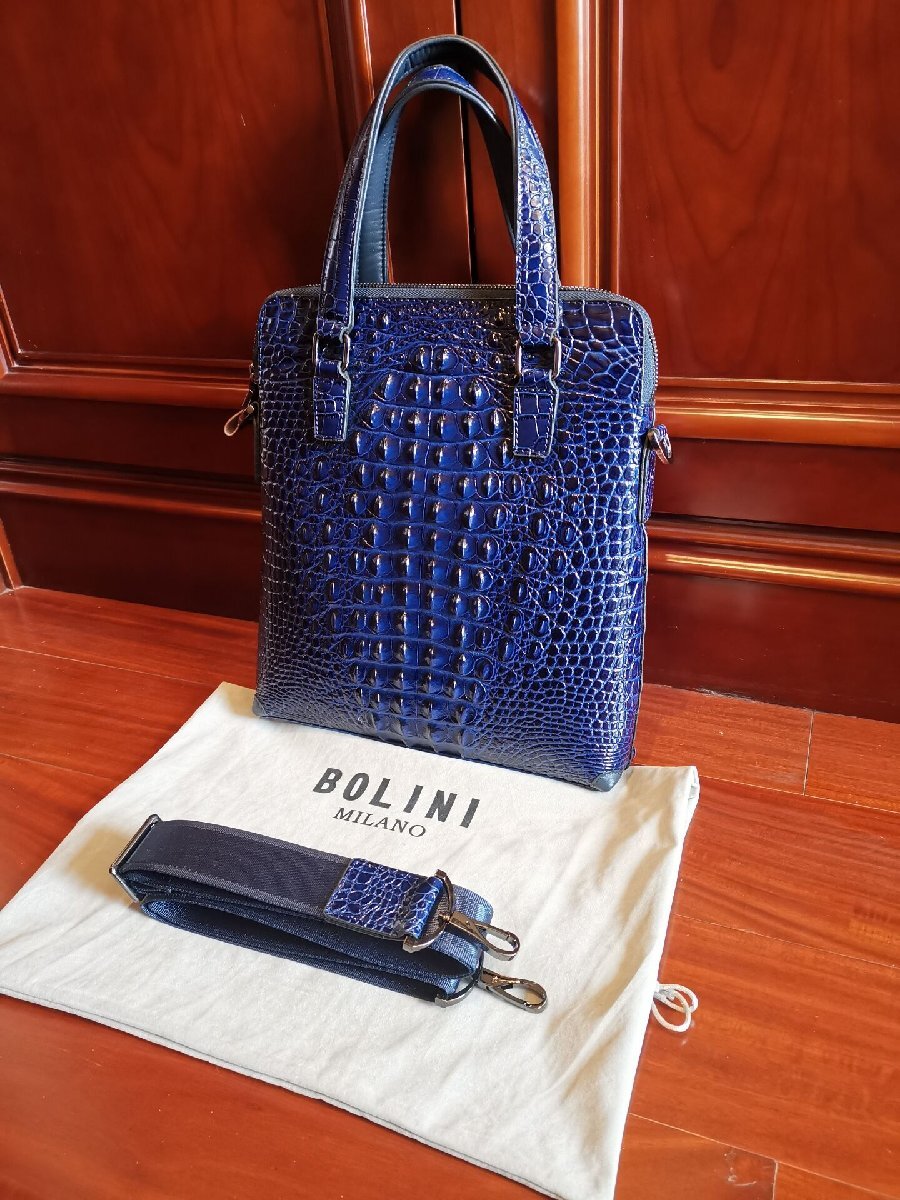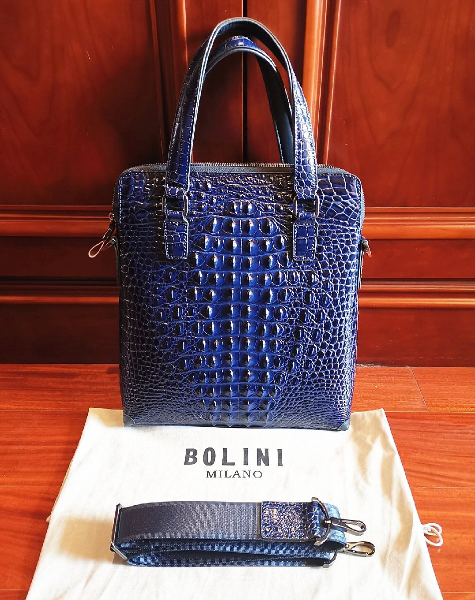 最上級逸品※定価18万◆イタリア・ミラノ発*BOLINI ボリニ・最上級牛革・クロコダイル*トートバッグ/茶色 | |||||||||||