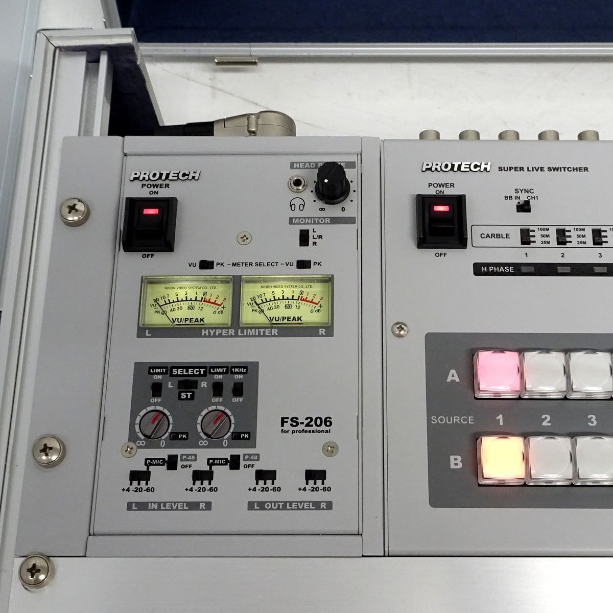商品説明 PROTECH VSE-500 ライブスイッチャー + FS-206 ハイパーリミッター の出品です。 アルミケース内にキャノン4Pin電源が3台あり、内2台が各機器に繋がっています。 ※写真6枚目、下側の写真が電源です。 ☆動作確認につきまして ・FS-206 ハイパーリミッター 左右バランス良好で、リミッター機能、+48Vファンタム機能もOKです。 モニター切り替えにガリがありましたが、清掃して小さくしておきました。 ・VSE-500 ライブスイッチャー SDコンポジット対応、外部同期入力必要となります。 5ch分のコンポジット入力→REC/PROGRAM 出力は確認OKです。 AUTO TAKE時間の調整も出来ました。 ☆注意事項につきまして ・VSE-500 インカムは確認していません。 ・VSE-500 外部同期入力必要となります。 中古/動作品として出品させて頂きます。 商品詳細