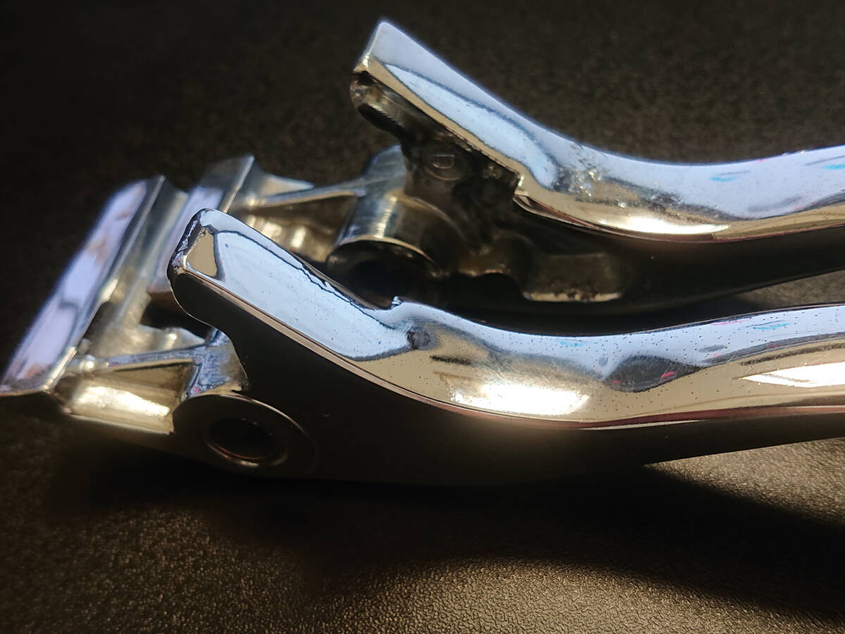 画像のMF06 FORZAより取り外した左右レバーセットです。USEDのためご覧のように傷、使用感、メッキ剥がれ等ございますが問題なくお使い頂けます。社外品ですが純正とほぼ変わらない形状で、型番が合えば他の車種でも使用可能です。画像にて十分ご確認、ご理解の上、お使い頂ける方がおられましたらどうぞ。落札後はノークレーム、ノーリターンでお願いいたします。他にも色々と出品しておりますので宜しければご覧下さい。同日内に落札頂いた物は全品同封可能です。