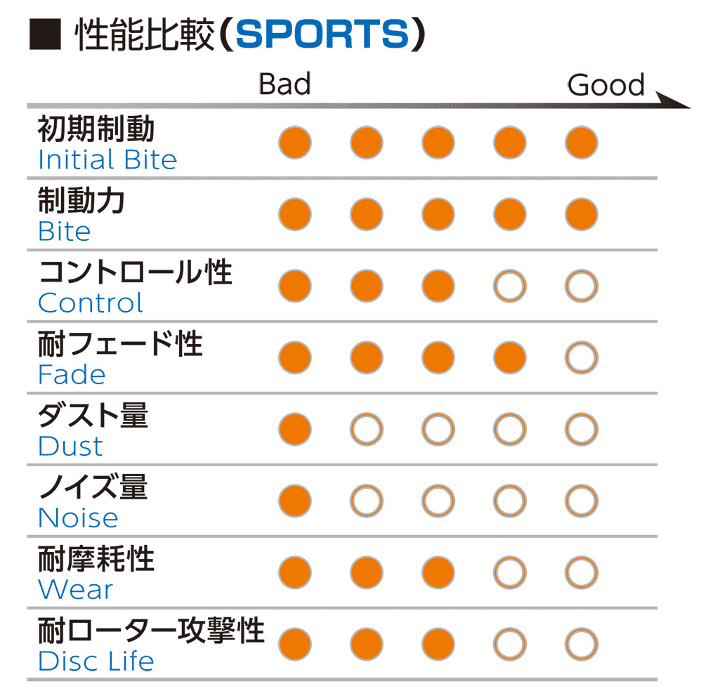 | ■商品説明 | 幅広い温度域で優れた効きとコントロール性を実現するモデル。 【材質】スーパーグラファイトメタリック(Super graphite metallic) 【温度域】0~800℃ 【摩擦係数】0.43~0.58μ |