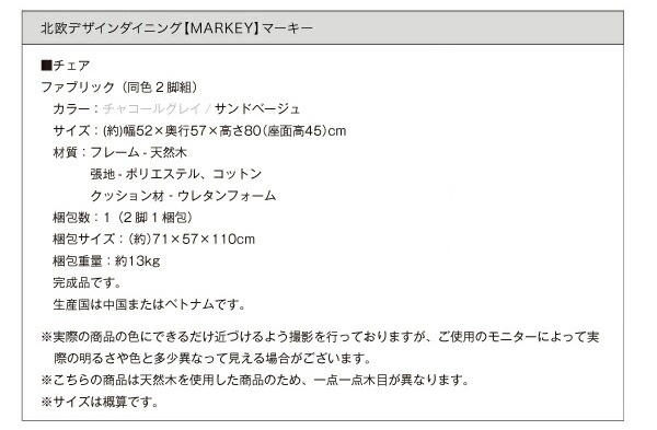 ![]() 北欧デザインダイニングチェア 2脚組 MARKEY マーキー サンドベージュ ![]() ※お使いのブラウザ・モニター等の使用状況により色目の見え方が異なる場合がございます。 ◇◆支払詳細◆◇ ◇◆発送詳細◆◇ ◇◆コメント◆◇ |