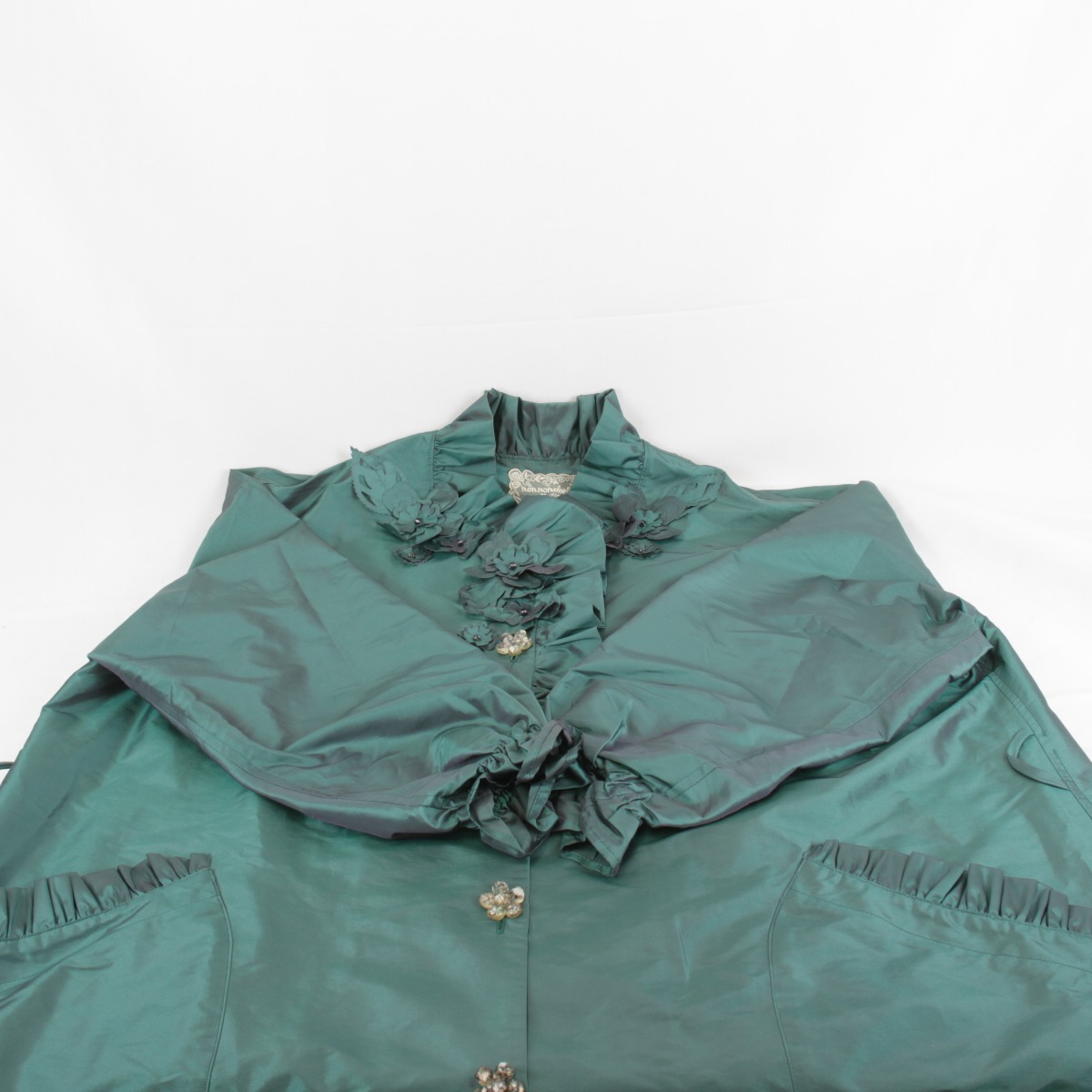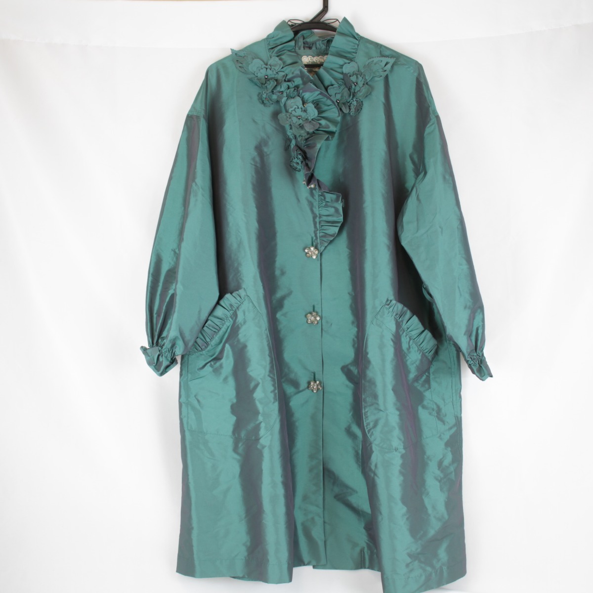 | BA | 表面:スレ、シワ 内側:糸のほつれ におい:匂いあり 状態コメント:襟の内側部分に糸のほつれがございます。外側にシワ、ボタン部分にスレがございます。保存臭ございます。薄手のナイロン生地でゆったり着ていただける一着です。襟元の花が繊細です。 |