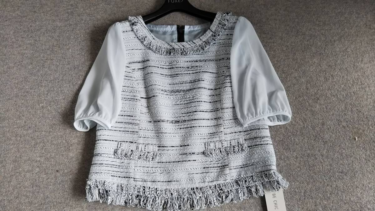 実寸は 肩幅35cm 脇下身幅47cm 袖丈29cm 着丈(背中心ネックラインから)46cm (素人の採寸につき誤差はお許し下さい)。