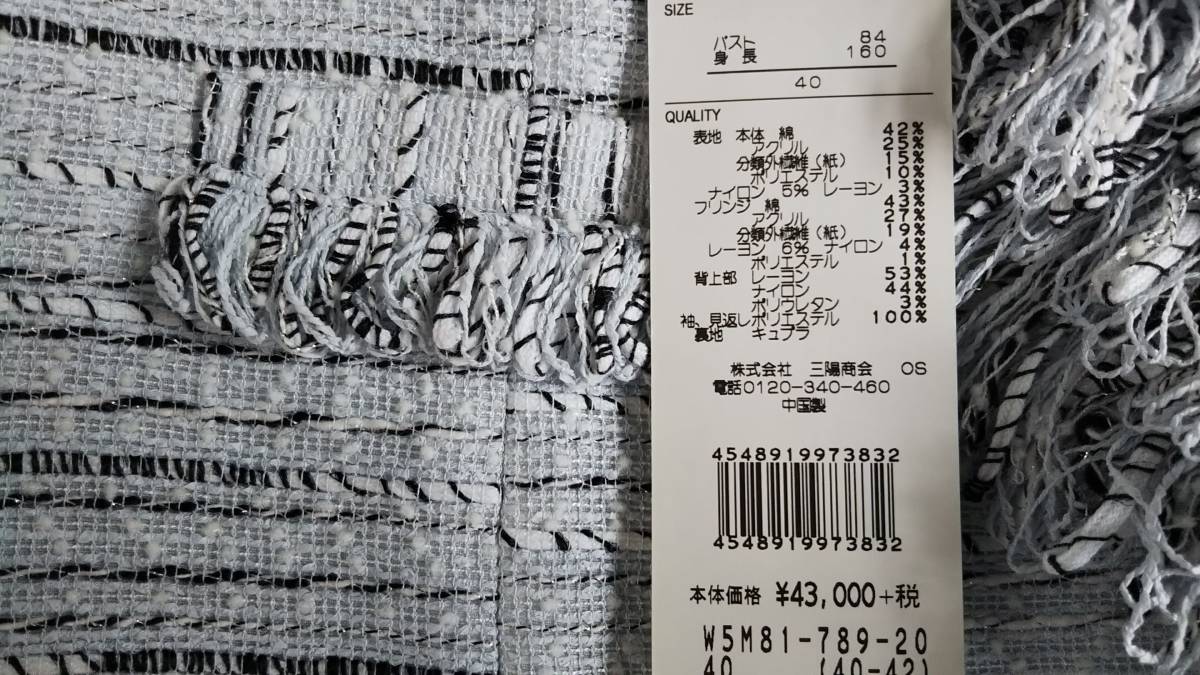 サイズは42(タグ表示サイズ バスト87 身長160 )です。