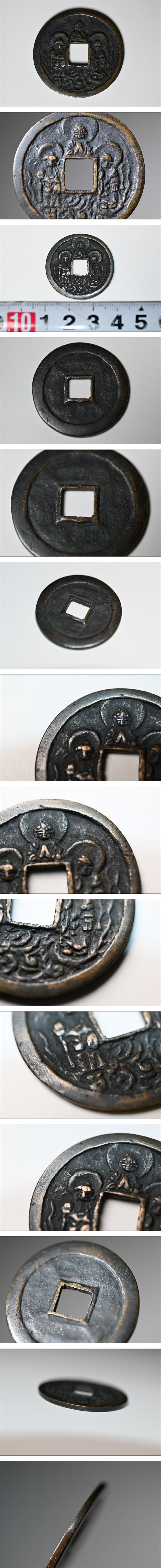 古銭 絵銭 三尊 福銭 仏銭 穴銭 重量約8.8g 径約31mm 三尊佛 阿弥陀如来 観音菩薩 仏教美術 佛教 | |||