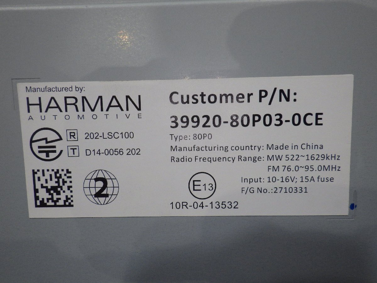 | 備考 | カーナビ、HARMAN、39920-80P03-0CE、地図データ:2015年度版Ver.1.6、本体のみ、写真にある物のみ、 全体:少キズ&少汚れ、テスト内容下表参照、