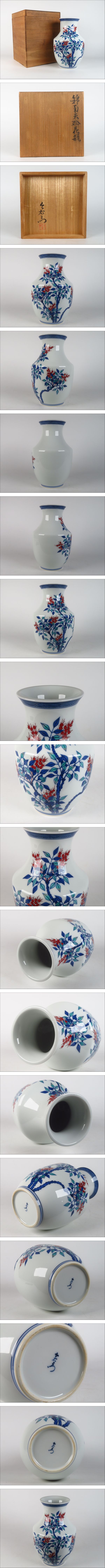 有田焼 人間国宝 今泉今右衛門 錦花絵花瓶 飾壺 壷 細密絵付 作家 在銘 共箱 栞 骨董品 古美術品 高さ21.5cm【97①】 | ||