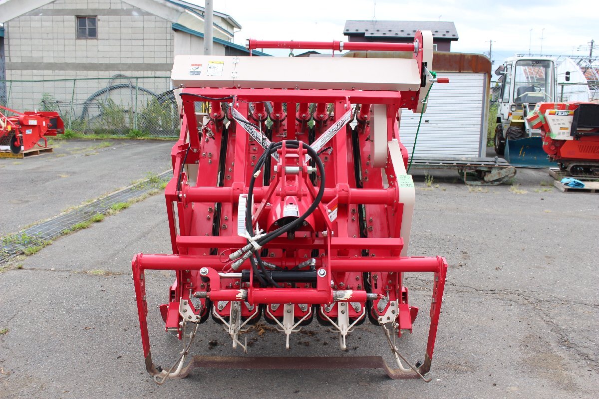 | ■商品説明■ | ササキ 中古 ニンニクハーベスタ HN402C こちらの商品は「来店引取」にてお願いします。 発送ご希望の方はお電話ください。 青森県十和田市より出品しております。 ※【発送詳細】をご確認ください。 主要内容 ◎機体寸法(カタログ値):約 全長2,250×全幅1,780×全高1,460mm ◎機体質量(カタログ値):約 560kg ◎適応トラクタ:40~60PS ◎掘取方式:振動ソイラ 挟持引き抜き ◎掘取条数:4条 ◎掘取条間:250mm ◎3P直装 ◎横スライド量:右100mm 左100mm ◎スキッド調整量:上40mm 下40mm ◎作業速度:0.4~0.8km/h ◎PTO回転数:1速 540rpm以下 ◎収納方法:巻き上げドロッパ方式 ◎排葉方法:後方左右落とし 動作確認 〇手回しにて動作確認済み 〇リモコン操作確認済み ※実作業での確認等は出来ておりません。 注意事項 ●農機具特有のサビ・汚れ・キズがあります。 ●現状(整備・メンテナンス等は行っておりません)での販売となります。 当方の気付かない点や説明不足も含めて中古品・現状渡しであることをご理解の上、検討をお願いいたします。 |