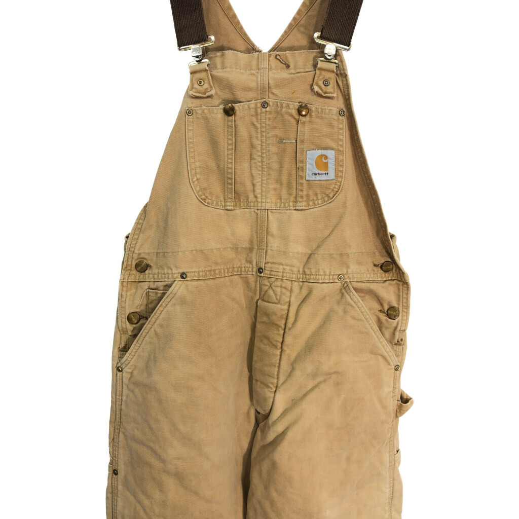 | 【商品管理番号】 R7985 【ブランド】 Carhartt/カーハート 【サイズ】 W36相当 【実寸サイズ】 総丈:約157cm ウエスト:約92cm 股下:約76cm わたり幅:約36cm 裾幅:約25cm 【主な素材】 表地 : コットン 【色】 ベージュ 【仕様】 裏地キルティング ダック ダブルニー ビブオーバーオール 【状態】 汚れ:胸、もも、ひざ、スネ、ふくらはぎ 肩紐ベルト キズ:裾 特記事項:ステッチ抜け | |||