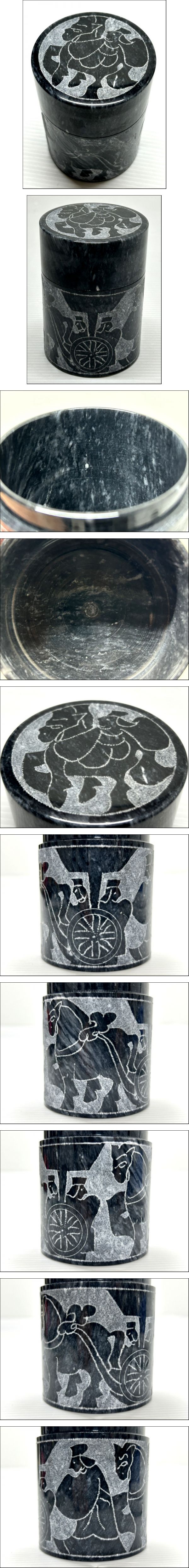 美品/未使用? 天然大理石 茶筒 馬車朝政彫刻図 茶葉/お香/煙草/小物入れ 茶道具/石細工/中国工芸美術/年代物/時代物 | |