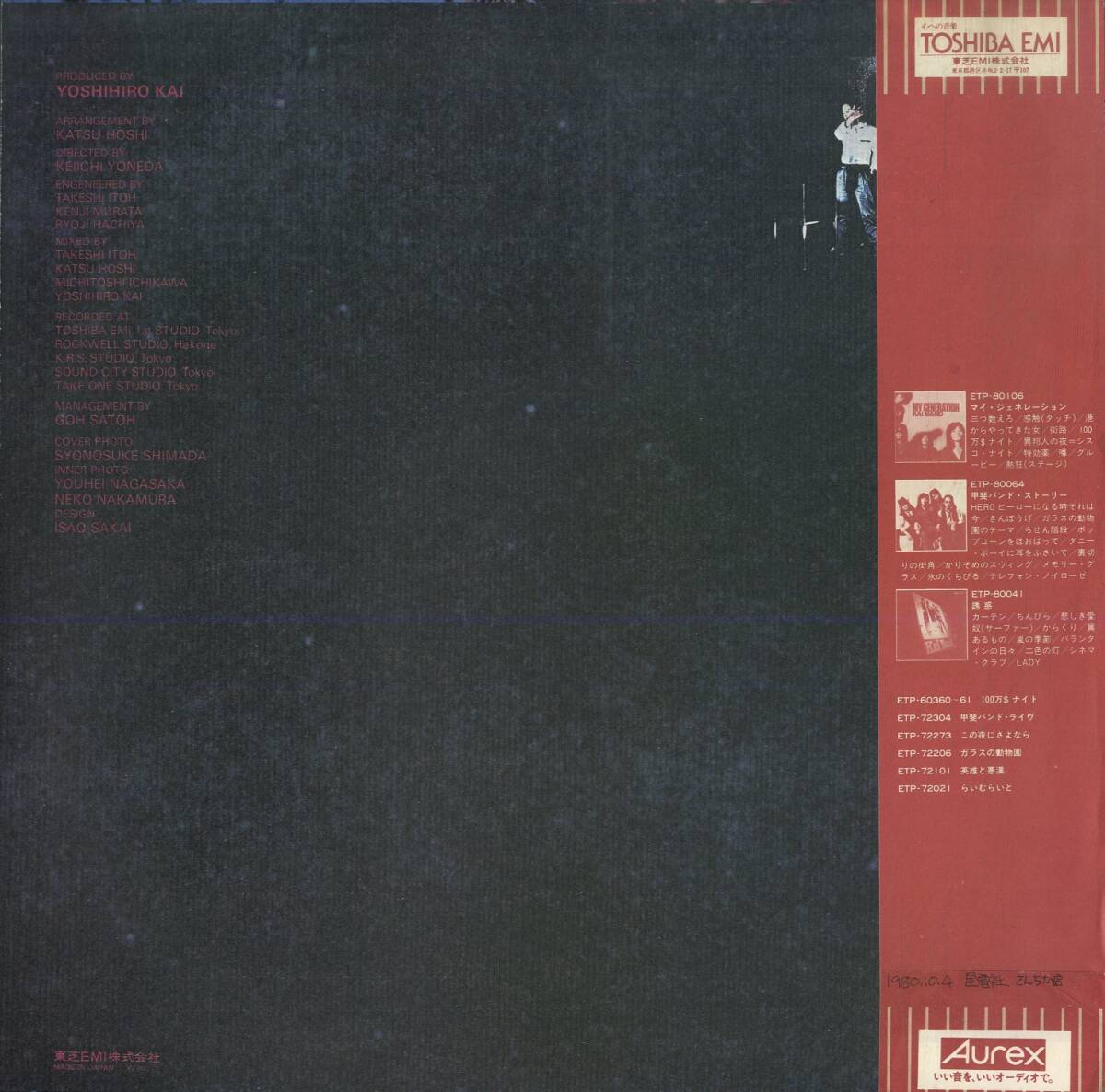 A00577271/LP/甲斐バンド(甲斐よしひろ)「地下室のメロディー(1980年・ETP-90016・ハードロック・グラムロック)」 [浏览原始页面]