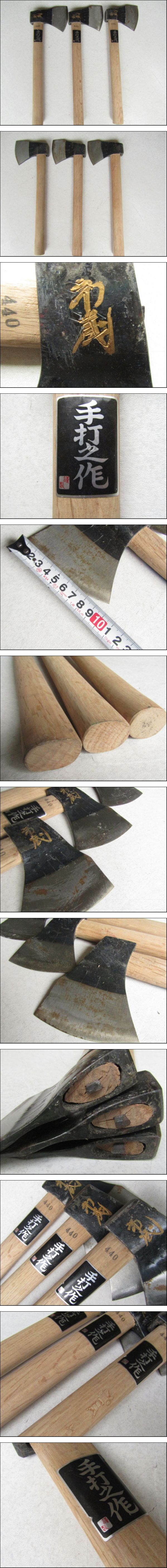 ■■① 手斧 斧 オノ 市蔵 手打之作 3本まとめて 全長42㎝ 薪割 キャンプ■■ | |||