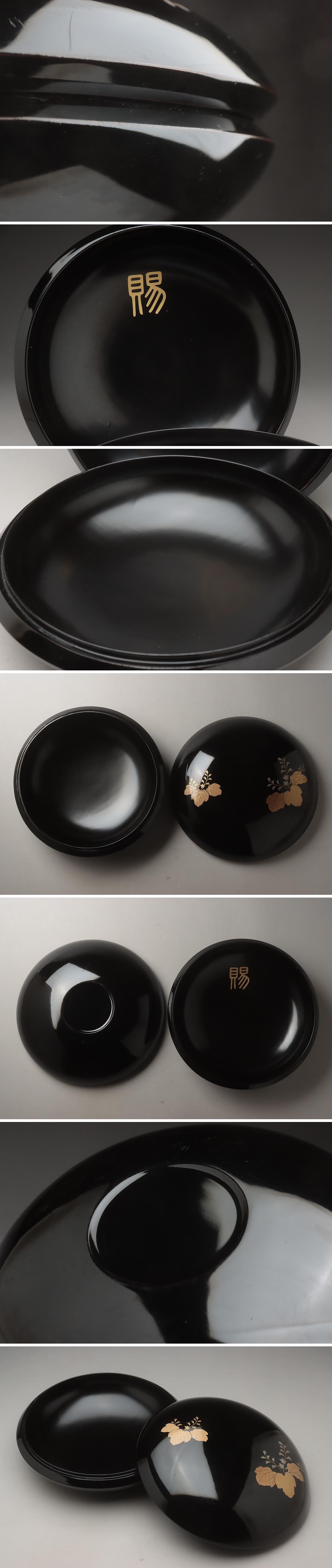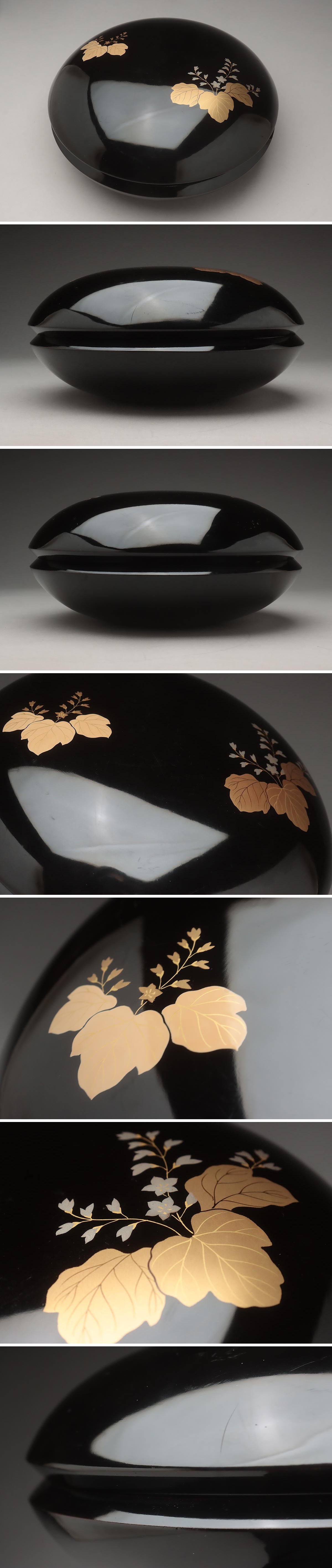 ◆ 時代漆工芸 賜品 黒漆塗 桐蒔絵 菓子器・桐蒔絵喰籠 径23.5cm・蒔絵蓋物 茶具 茶器 煎茶道具 ◆