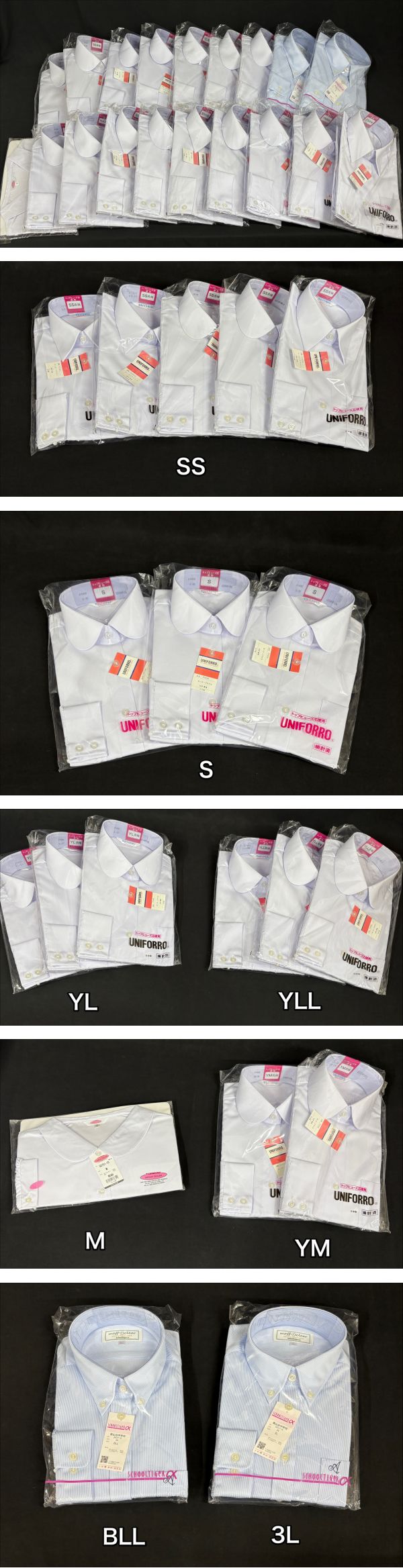 衣料品店在庫品 UNIFORRO 女子 カッターブラウス S~3L 長袖 19点 制服 学生服 未使用長期保管品 1009-1*d | |||