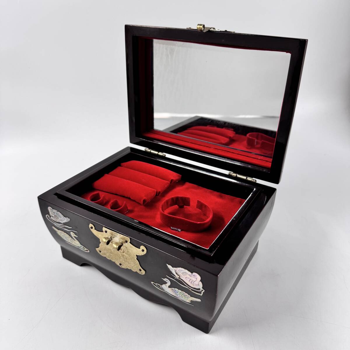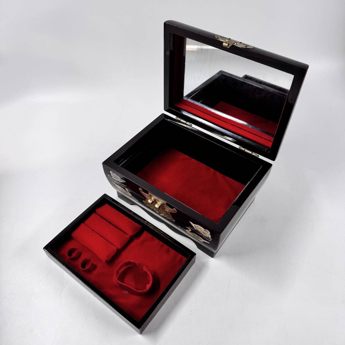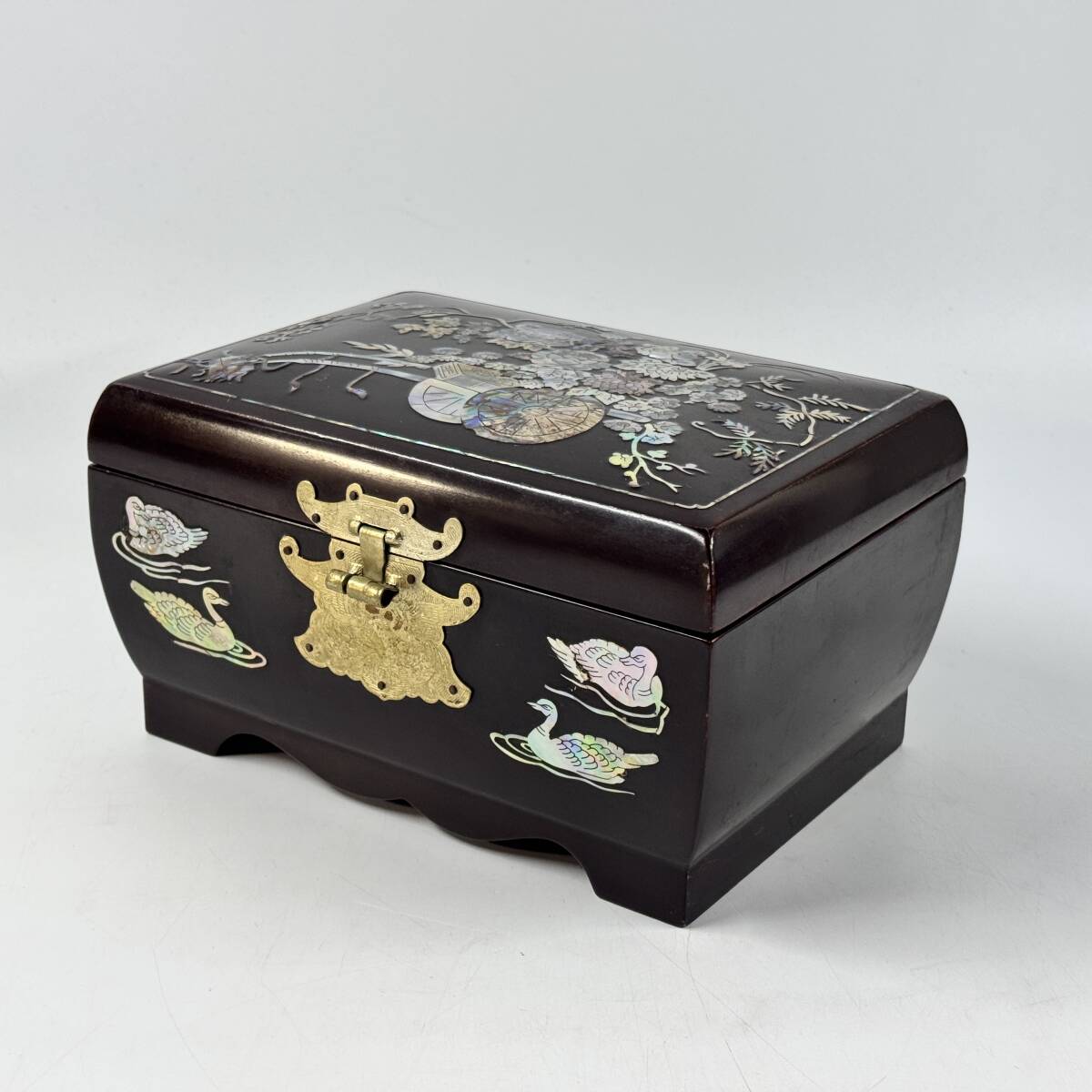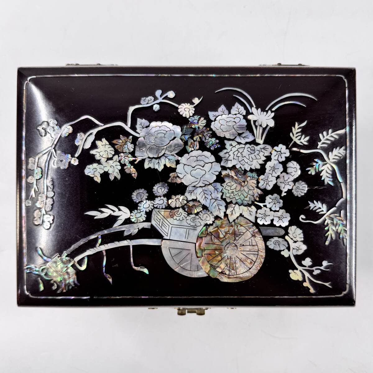 高麗螺鈿 螺鈿細工 漆芸 ミラー付きジュエリーボックス 花鳥図 鍵欠品 韓国伝統工芸品 経年保管品 現状品の出品です。