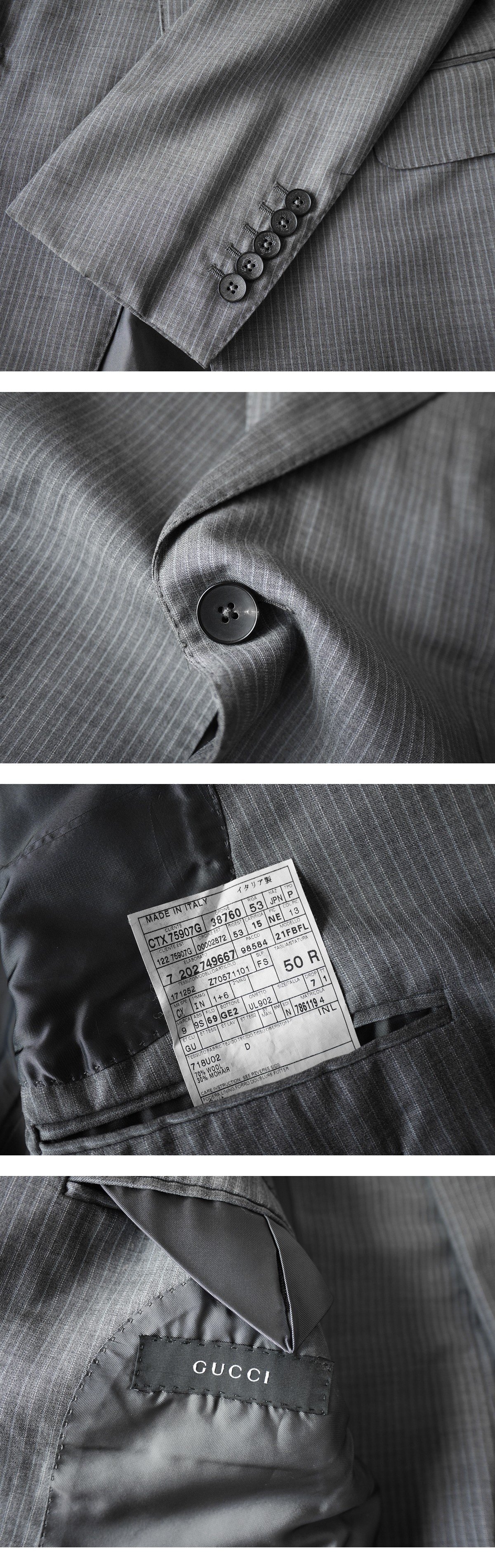 肌触りの良いイタリア産ヴァージンウールを使用し、光の角度によって自然な光沢感を帯び、とても上品な風合いです。チャコールベースのオーセンティックな仕様ですので、ビジネスはもちろん、パーティまでシーンを問わず幅広くご使用いただけます。総裏地仕様オールシーズンタイプとなります。グッチのスーツはとても高価かつ人気のアイテムですので、この機会にぜひよろしくお願いいたします。