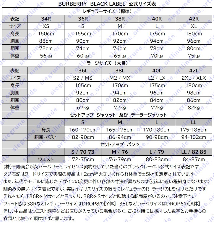 【極上美品】バーバリー ブラックレーベル 黒に白のストライプ柄 スリーピース スーツ 92-76-170 38R (Mサイズ) BURBERRY BLACK LABEL ★☆★☆ あなたに寄り添う良品専門店へようこそ! ☆★☆★ 傷や汚れは無くても肘やお尻がテカったスーツってどう思います? 全てを程度の良い選別品で揃えられるのは全国でも弊社だけ! おかげさまでリピート率3割超えの高い信頼を頂いております 2点以上で送料無料! 各種クーポンは[まとめて取引]の合計金額に適応出来るのでご活用下さい スピード発送(ヤマト運輸営業所から即日出荷!) 落札後に決済 ⇒ 月曜日発送 ⇒ 火曜日到着(一部地域は+1日) 匿名発送(おてがる配送宅急便)だからプライベートも安心 受渡しも色々 サイン不要の非対面[置き配]で不在時も対応 さらにコンビニや営業所で受け取りも可能(クロネコメンバーズと連携必) ご入札は商品説明及び以下の項目をご確認頂いた上、入札操作も慎重にお願いします ■商品の程度 着用回数の少ない極上美品です(クリーニング済みで即着用可) ノーダメージ品です ■商品の特徴 バーバリーブラックレーベルのスリーピーススーツで御座います お色は黒に白のストライプ柄 勿論、選別品ですので黒いスーツにありがちなテカリなとも無く また使用感も少なくとても程度の良いお品となっております。 スリーピースが映える季節がやってまいりました 是非この機会に程度の良いものを1着いかがでしょうか? ■メーカー:BURBERRY BLACK LABEL (株)三陽商会 ■色柄:ブラック系(ストライプ柄) ■表地:ウール100% 裏地:ポリエステル キュプラ 他 ■厚薄:厚 ----●-- 薄 ■季節:春夏(背抜きです) ■タグ:92-76-170 38R (Mサイズ) ■実寸 ジャケット 肩幅 約43cm 身幅 約48cm 着丈 約73cm 袖丈 約61cm ジレ 身幅 約48cm 着丈 約60cm パンツ 胴囲 約85cm (+0cm これ以上は広げれません) 股上 約26cm 股下 約80cm (+7cm 最長約87cmまで伸ばせます) 渡幅 約32cm 裾幅 約21cm 総丈 約103cm ■採寸位置 肩幅(肩⇔肩の直線)/身幅(脇下の片幅)/着丈(後襟下~裾)/袖丈(肩~袖先) 胴囲(内周測り)股上(前部分~股の繋ぎ目)/股下(股の付根[十字部分]~裾) 渡幅(股の付根位置での片幅)/裾幅(裾の片幅)/総丈(前身頃の帯位~裾先) ※採寸位置は各部位の縫目・繋目 (幅)=平置き直線距離 ×2で囲(筒)です ※(胴囲=ウエスト)はパンツの入り口(帯部分)ベルト位置を指します ※裾を伸ばせる寸法はシングル仕上げでヘム(返し)を約2cm残しの想定です ※ウエスト・股下などのお直しは購入後ご自身でお願いします ※タグサイズと商品の実寸が違うのは当然です。スーツを購入したら裾上げを するようにウエスト調整したり袖丈を変更する場合もあるので、ご検討の際は 上記採寸(実寸)表を優先し、お手持ちのスーツや衣類と比較してご検討下さい ■季節表記と裏地の種類 背抜きは春夏の4~10月頃/半裏は盛夏の7~9月頃/総裏は秋冬の10~4月頃 着用時期(シーズン)は本州主要都市の気候を元に説明させて頂いてます お住いの地域や気候により異なります事、ご理解をお願いします ※厚薄 生地に厚み表記は参考程度の目安とお考えください ※半裏は背抜きを更に前身頃の裏地を省き夏用に軽くて通気性を高めたものです ■備考・その他 販売はスーツの上下またはジレ(ベスト)がセットのスリーピースで撮影備品の シャツ/ネクタイ/ハンカチ/ハンガー等の撮影小物は付属しておりません ベントや裾仕上げなどは其々商品画像にてご確認頂けます ![]() ![]() 安心安全宣言!!良いものだけをお届け致します! 原則はお客さまファースト!ネット商品最大の不安を軽減! その① 取扱う商品を程度の良い選別品のみに絞る事で品質への不安を軽減 その② 神経質な方も安心、クリーニングしてから販売(綿素材は除く) その③ 偽物・詐欺のリスク無し 返品保証有り その④ 専門店として、商品への豊富な知識と経験による商品説明 その⑤ 専用箱をご用意、丁寧に梱包して更に即日スピード発送! その⑥ アフターも完璧 メンテナンスから着こなしの相談まで幅広く対応 テカリはスーツの寿命です! テカリのあるスーツは買取時に値段が付きません 車で例えるなら多走行で使用感 も酷くルーズで不衛生と本来の役目を果たせないからです。 古着市場でも捨値なこれを質より値段で仕入れフリマやオークションで売られ被害 が出ているようです、特に悪質なのがそんな粗悪品や破損した状態でも[未使用級] と称して売られているので、入札前には評価の確認を忘れず行いましょう。 [未使用]か[未使用級]とノークレームノーリターンがセットであれば確信犯です 弊社ではお客さまの安全のため[新品同様]は全て返品保証付きで販売させて頂てま すのでご安心ください。「騙されるのはもう懲り懲りだ!まともな出品者は居ない のか?」とそんな方にお勧めで御座います。程度の良い選別品だけを販売し、説明 はしっかり、嘘や誇張は無く中には返品保証も付けたお品もあり自信をもって販売 させて頂いてます そして全商品クリーニングしてから販売※(一部除外:注意事項⑤を