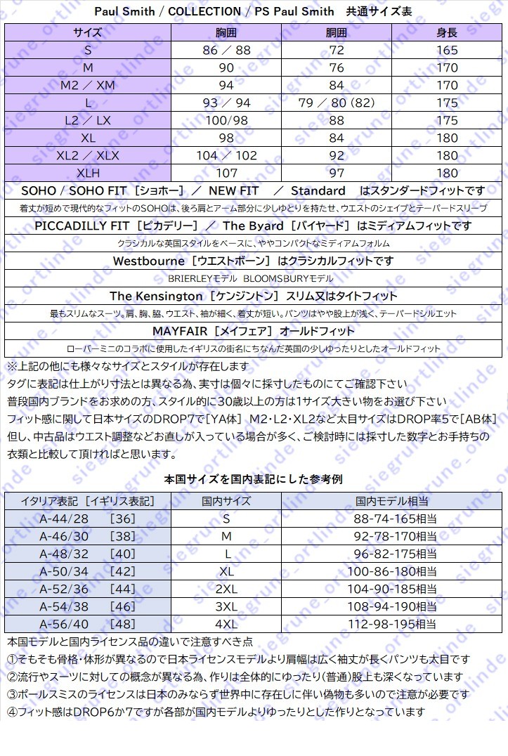 【美品・大きいサイズ】ポールスミス×Ermenegildo Zegna 微光沢ブラックストライプ柄 スーツ 100-88-175 (L2サイズ) Paul Smith ★☆★☆ あなたに寄り添う良品専門店へようこそ! ☆★☆★ 傷や汚れは無くても肘やお尻がテカったスーツってどう思います? 全てを程度の良い選別品で揃えられるのは全国でも弊社だけ! おかげさまでリピート率3割超えの高い信頼を頂いております 2点以上で送料無料! 各種クーポンは[まとめて取引]の合計金額に適応出来るのでご活用下さい スピード発送(ヤマト運輸営業所から即日出荷!) 落札後に決済 ⇒ 月曜日発送 ⇒ 火曜日到着(一部地域は+1日) 匿名発送(おてがる配送宅急便)だからプライベートも安心 受渡しも色々 サイン不要の非対面[置き配]で不在時も対応 さらにコンビニや営業所で受け取りも可能(クロネコメンバーズと連携必) ご入札は商品説明及び以下の項目をご確認頂いた上、入札操作も慎重にお願いします ■商品の程度 擦れやテカリの無い美品です(クリーニング済みで即着用可) ■程度と商品説明 Ermenegildo Zegna(エルメネジルド・ゼニア)社のTRAVELLER 生地を使用したスーツで御座います この生地は高級ウール特有の滑らかな肌触りと、しっとりとした 微光沢が特徴です ※ゆったりのL2サイズ そしてこちらはポールスミスではとても希少なL2サイズとなり Lサイズをベースに横に広げたディテールはXLサイズよりも太目な 作りで特にウエストなどパンツがゆったりしているのが特徴です インナーを着込みたいこの季節に!、ガッチリ体型でポールスミス の細身は合わないとい方へ是非お勧めしたいサイズで御座います。 ■メーカー:Paul Smith (株)ジョイックスコーポレーション ■色柄:ブラック系(ストライプ柄) ■表地:ウール98% シルク2% 裏地:ポリエステル キュプラ 他 ■厚薄:厚 --●---- 薄 ■季節:秋冬(総裏地です) ■タグ:100-88-175 (L2サイズ) ■実寸 ジャケット 肩幅 約45cm 身幅 約52cm 着丈 約74cm 袖丈 約62cm パンツ 胴囲 約94cm (+4cm 最大約98cmまで広げれます) 股上 約28cm 股下 約77cm (+6cm 最長約83cmまで伸ばせます) 渡り 約36cm 裾幅 約20cm 総丈 約101cm ■採寸位置 肩幅(肩⇔肩の直線)/身幅(脇下の片幅)/着丈(後襟下~裾)/袖丈(肩~袖先) 胴囲(内周測り)股上(前部分~股の繋ぎ目)/股下(股の付根[十字部分]~裾) 渡幅(股の付根位置での片幅)/裾幅(裾の片幅)/総丈(前身頃の帯位~裾先) ※採寸位置は各部位の縫目・繋目 (幅)=平置き直線距離 ×2で囲(筒)です ※(胴囲=ウエスト)はパンツの入り口(帯部分)ベルト位置を指します ※裾を伸ばせる寸法はシングル仕上げでヘム(返し)を約2cm残しの想定です ※ウエスト・股下などのお直しは購入後ご自身でお願いします ※タグサイズと商品の実寸が違うのは当然です。スーツを購入したら裾上げを するようにウエスト調整したり袖丈を変更する場合もあるので、ご検討の際は 上記採寸(実寸)表を優先し、お手持ちのスーツや衣類と比較してご検討下さい ■季節表記と裏地の種類 背抜きは春夏の4~10月頃/半裏は盛夏の7~9月頃/総裏は秋冬の10~4月頃 着用時期(シーズン)は本州主要都市の気候を元に説明させて頂いてます お住いの地域や気候により異なります事、ご理解をお願いします ※厚薄 生地に厚み表記は参考程度の目安とお考えください ※半裏は背抜きを更に前身頃の裏地を省き夏用に軽くて通気性を高めたものです ■備考・その他 販売はスーツの上下またはジレ(ベスト)がセットのスリーピースで撮影備品の シャツ/ネクタイ/ハンカチ/ハンガー等の撮影小物は付属しておりません ベントや裾仕上げなどは其々商品画像にてご確認頂けます ![]() ![]() 安心安全宣言!!良いものだけをお届け致します! 原則はお客さまファースト!ネット商品最大の不安を軽減! その① 取扱う商品を程度の良い選別品のみに絞る事で品質への不安を軽減 その② 神経質な方も安心、クリーニングしてから販売(綿素材は除く) その③ 偽物・詐欺のリスク無し 返品保証有り その④ 専門店として、商品への豊富な知識と経験による商品説明 その⑤ 専用箱をご用意、丁寧に梱包して更に即日スピード発送! その⑥ アフターも完璧 メンテナンスから着こなしの相談まで幅広く対応 テカリはスーツの寿命です! テカリのあるスーツは買取時に値段が付きません 車で例えるなら多走行で使用感 も酷くルーズで不衛生と本来の役目を果たせないからです。 古着市場でも捨値なこれを質より値段で仕入れフリマやオークションで売られ被害 が出ているようです、特に悪質なのがそんな粗悪品や破損した状態でも[未使用級] と称して売られているので、入札前には評価の確認を忘れず行いましょう。 [未使用]か[未使用級]とノークレームノーリターンがセットであれば確信犯です 弊社ではお客さまの安全のため[新品同様]は全て返品保証付きで販売させて頂てま すのでご安心ください。「騙されるのはもう懲り懲りだ!まともな出品者は居ない のか?」とそんな方にお勧めで御座います。程度の良い選別品だけを販売し、説明 はしっ