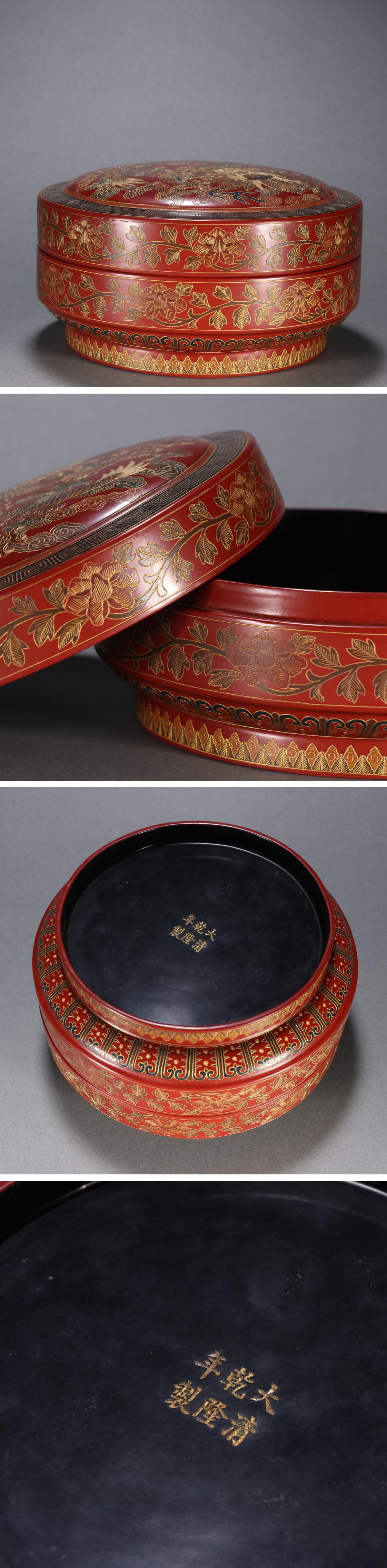 【清】某有名オークション購入 清時代 脱胎漆塗 雲龍戯珠紋蓋物 材質保証 当時物保証 古置物 古擺件 古美術 時代コレクション7L10-DD