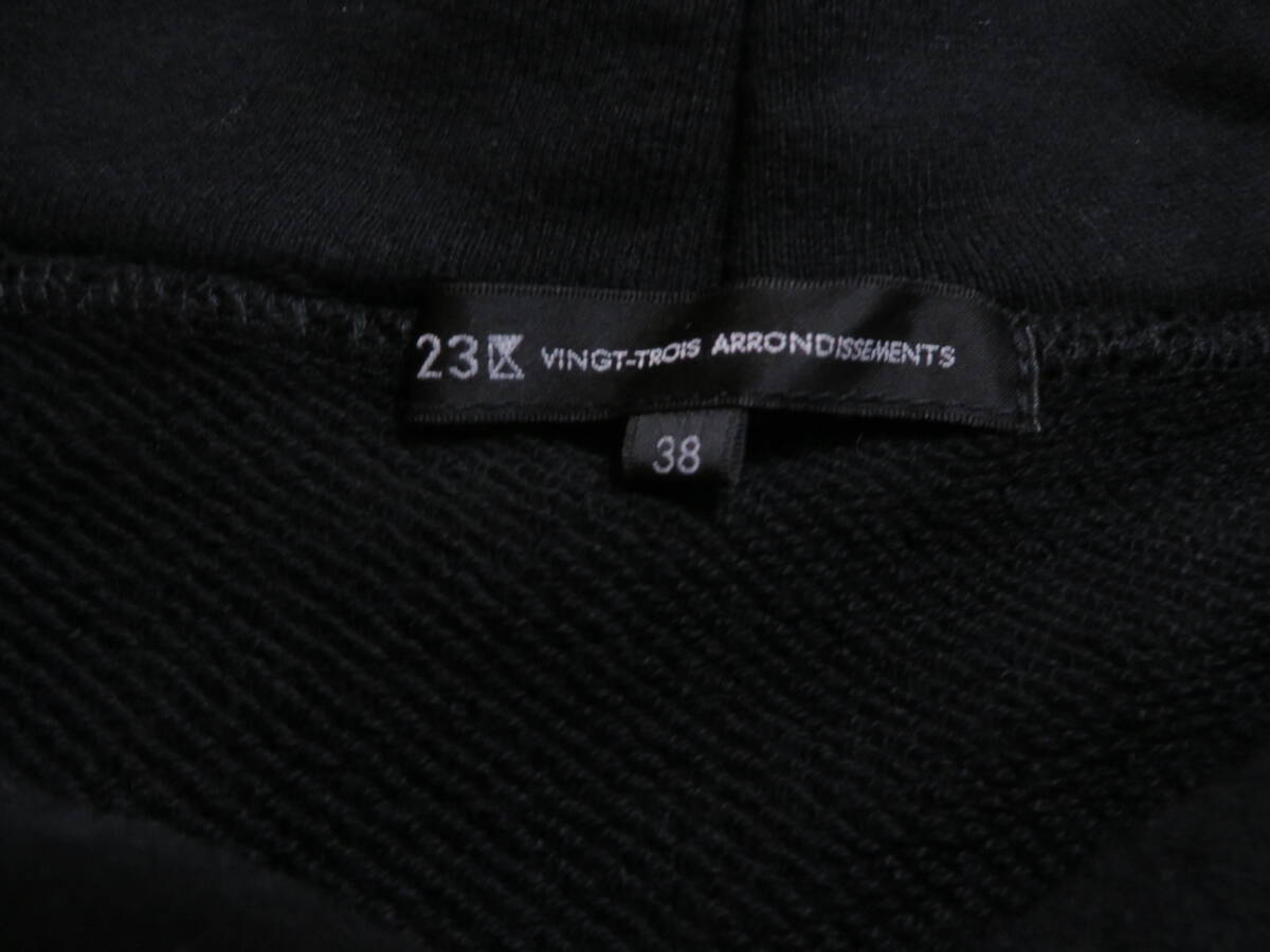 23区のフード付きトレーナーになります。お色は黒でサイズは38(M)になります。昨年購入しましたが、着る機会が無くクローゼット内に保管しておりました。両前ポケットが付いておりますので大変便利です。素人採寸になりますが、肩幅54cm、身幅59cm、着丈59cm、袖丈(肩口から袖口)50cmになります。発送は宅配便(EAZY)を予定。ノークレームノーリターンでお願い致します。