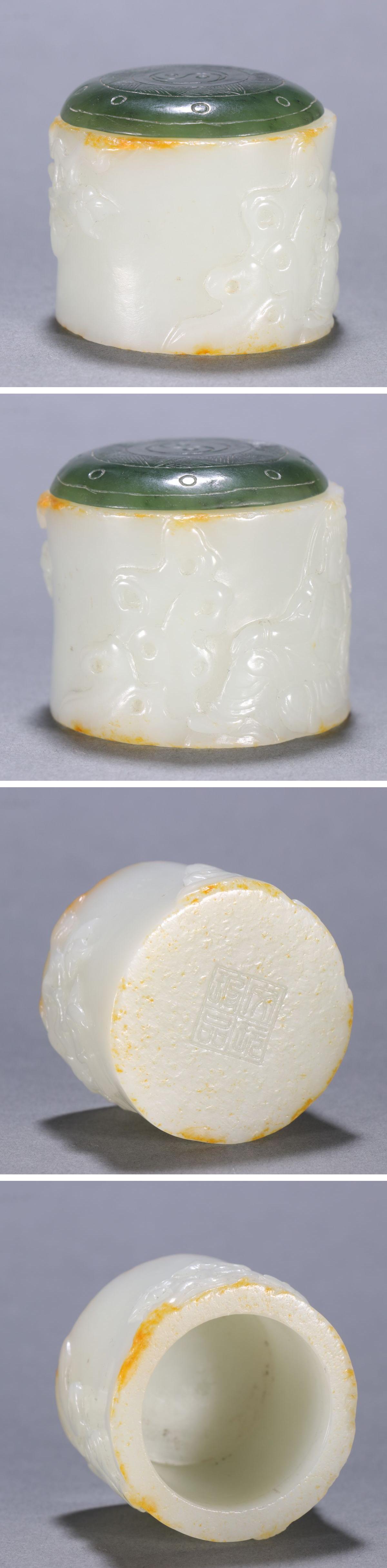 【清】某有名オークション購入 清時代 和田玉 白玉人物紋板指箱 材質保証 古置物 古擺件 古美術 時代コレクション7L10-BS10