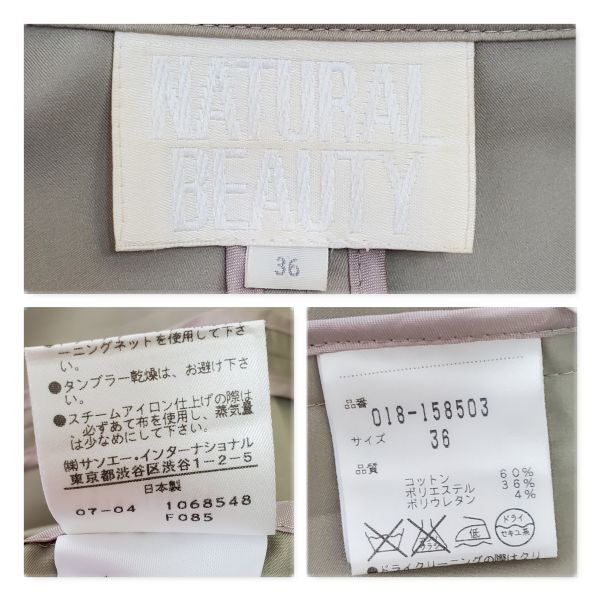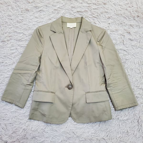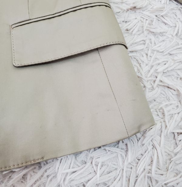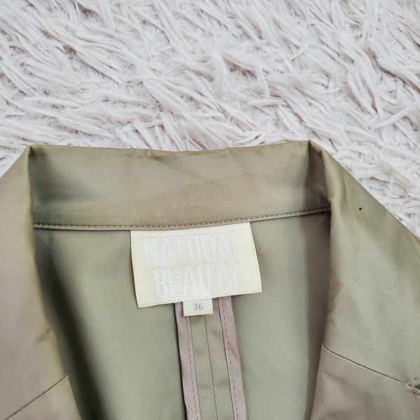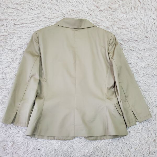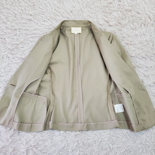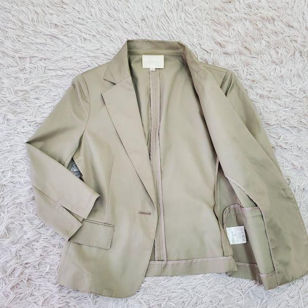 落ち着いたベージュカラーで、オフィスカジュアルや通勤スタイル、フォーマルな場にもぴったりな一枚です。