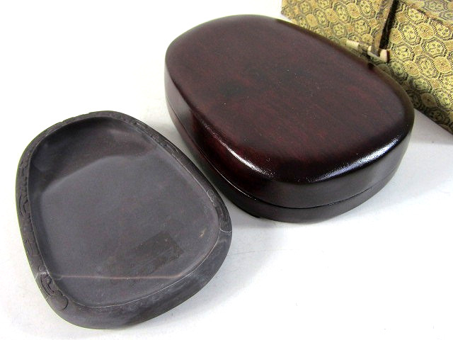 中国美術 端渓硯 金線 魚脳凍 硯 唐木箱 総重量:301g【説明欄に詳細写真有り】の出品です。