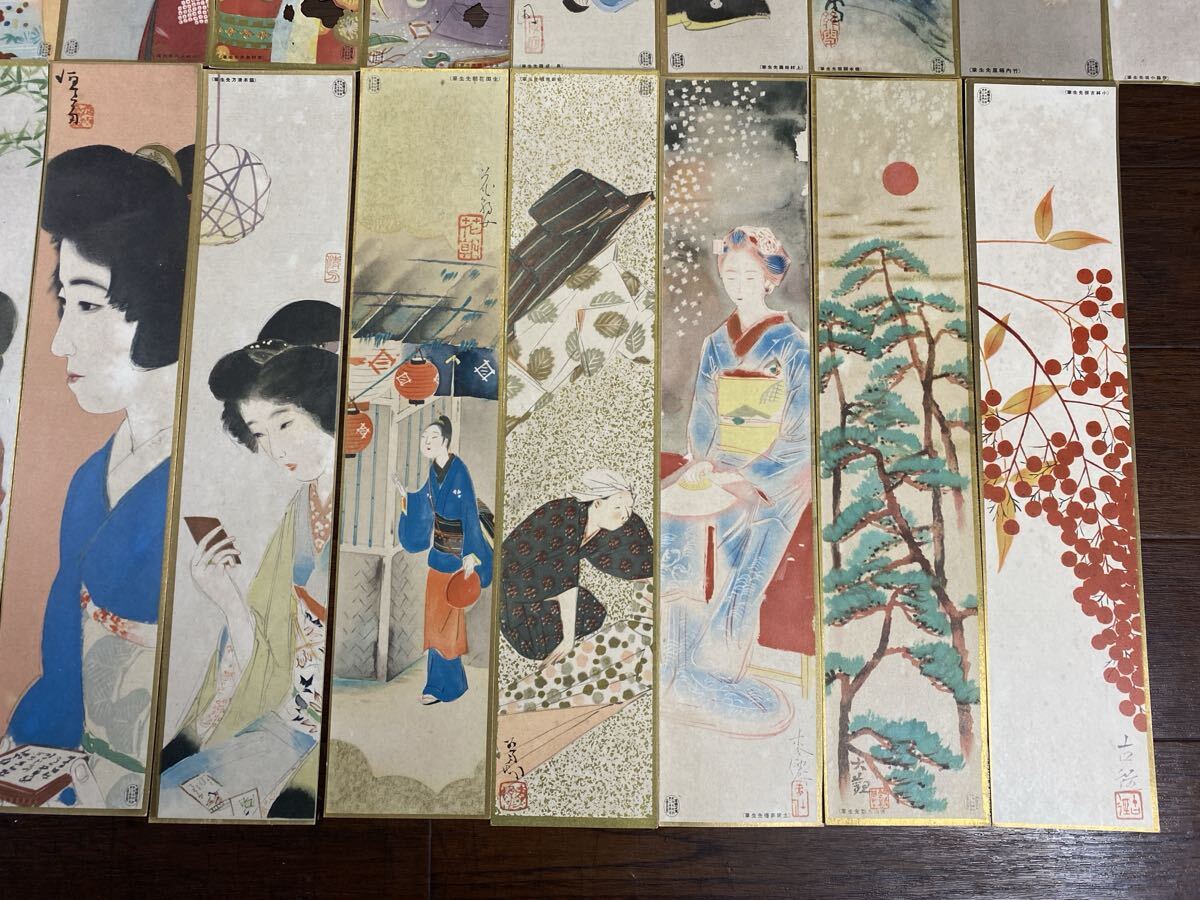 | ♪♪アンティーク 絵短冊 美人画 浮世絵 風景 複製 当時物 28枚 定形外発送♪♪ | ||
