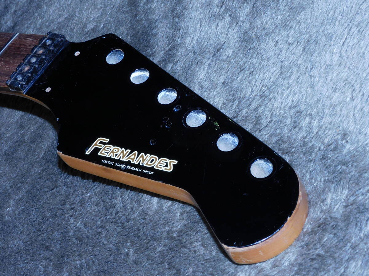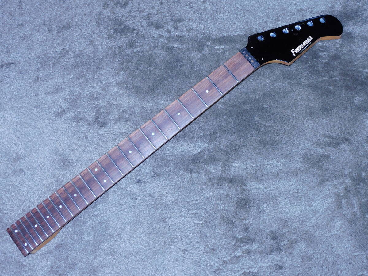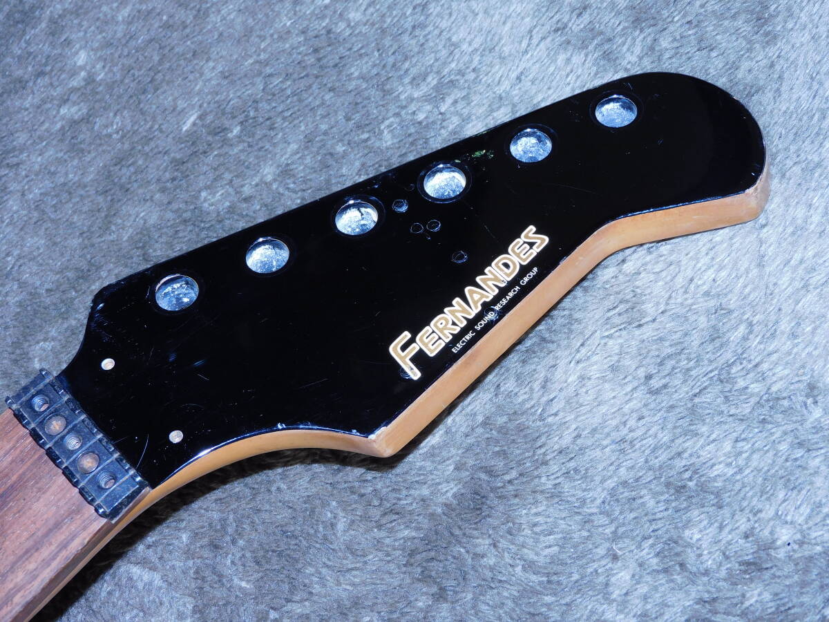 「フェルナンデス」のFRシリーズの「鍔だし24フレットネック/324ミリスケール/ブラック」のネックです。画像のように、中古なので経年使用によるキズや劣化があります。フレットは80~90%程度残っています。トラスロッドは動作確認済でネックはストレートに調整しています。付属品はありません。状態は画像でご確認下さい。当方にて出来るだけのクリーニングを致しましたが、落札者様でメンテナンスしてお使い下さい。画像やコメントをご参考に入札お願い致します。それではオークションが終わりますまでよろしくお願い致します。あくまでも中古品の為落札後のクレームやキャンセルはご遠慮下さい。中古品なのでキズや経年劣化等些細な事や、完璧な商品をお考えの方は入札をお控え下さい。ご理解の上ご入札下さい。オークション開催中の入札の取り消しもお受け出来ません。梱包送料は九州から東北までは1500円、沖縄2200円、北海道は2300円です。